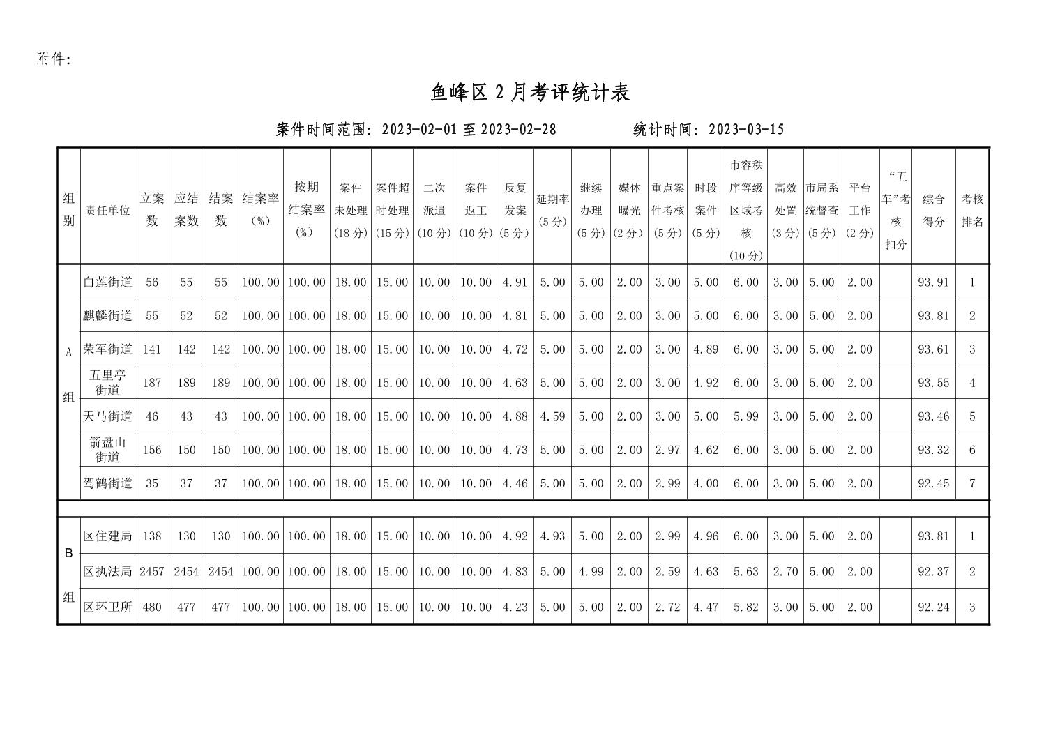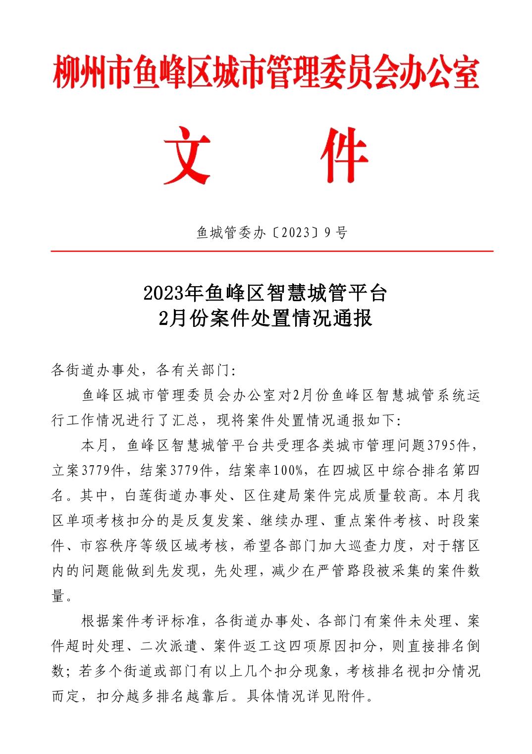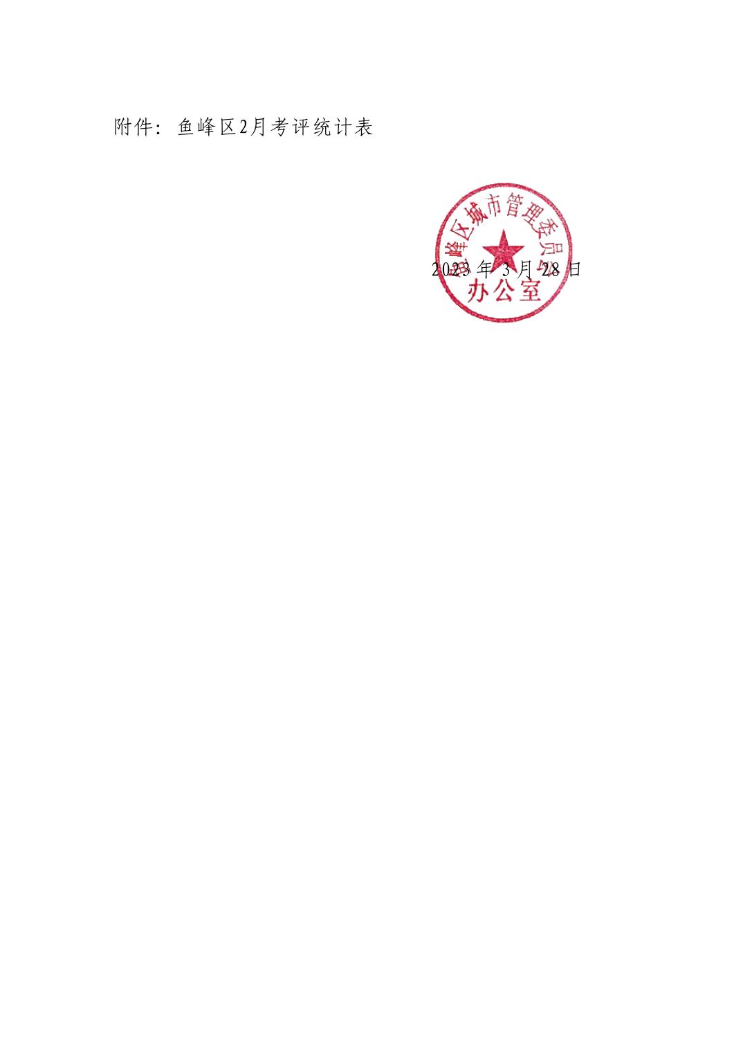 2023年鱼峰区智慧城管平台2月份案件处置情况通报
