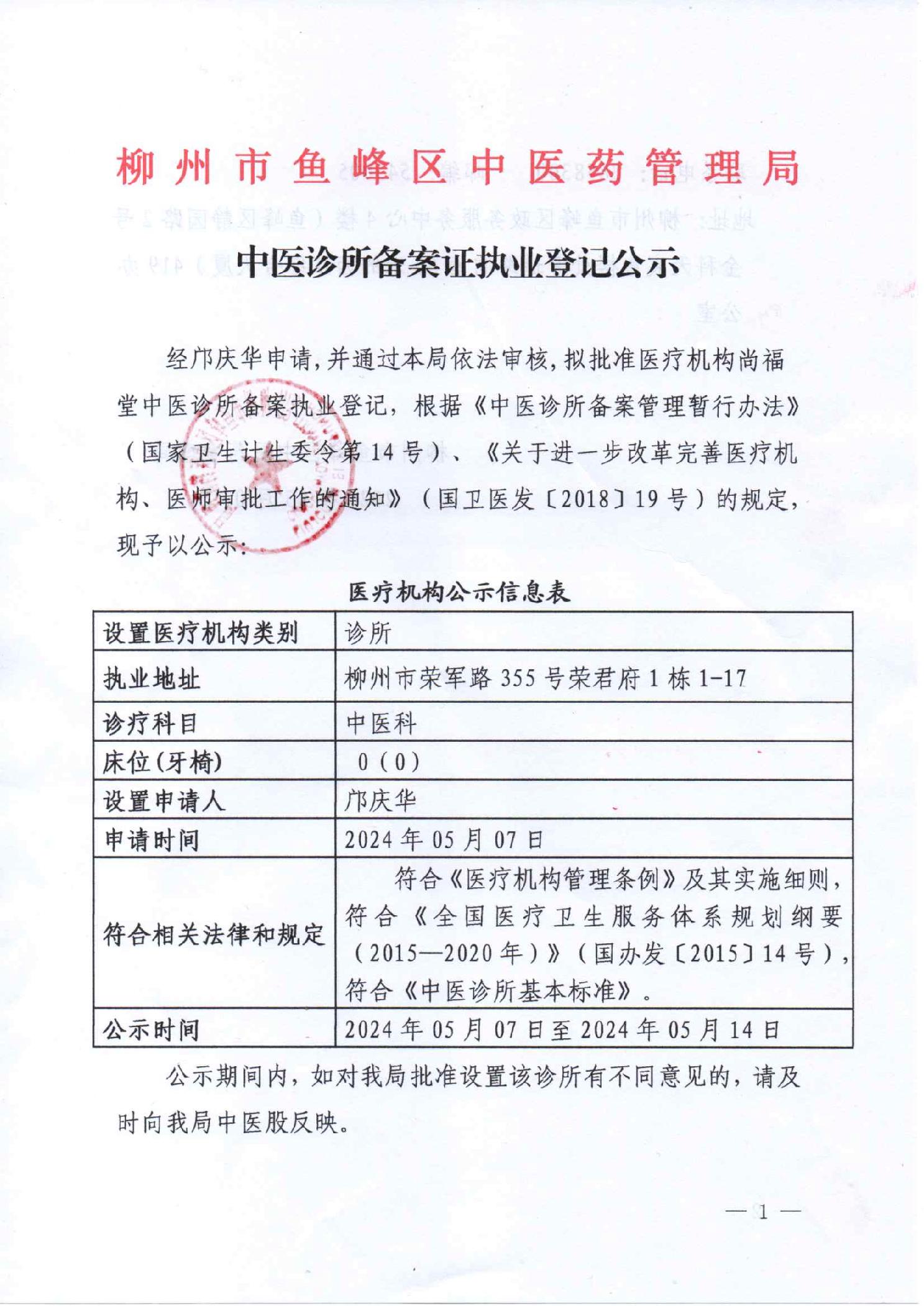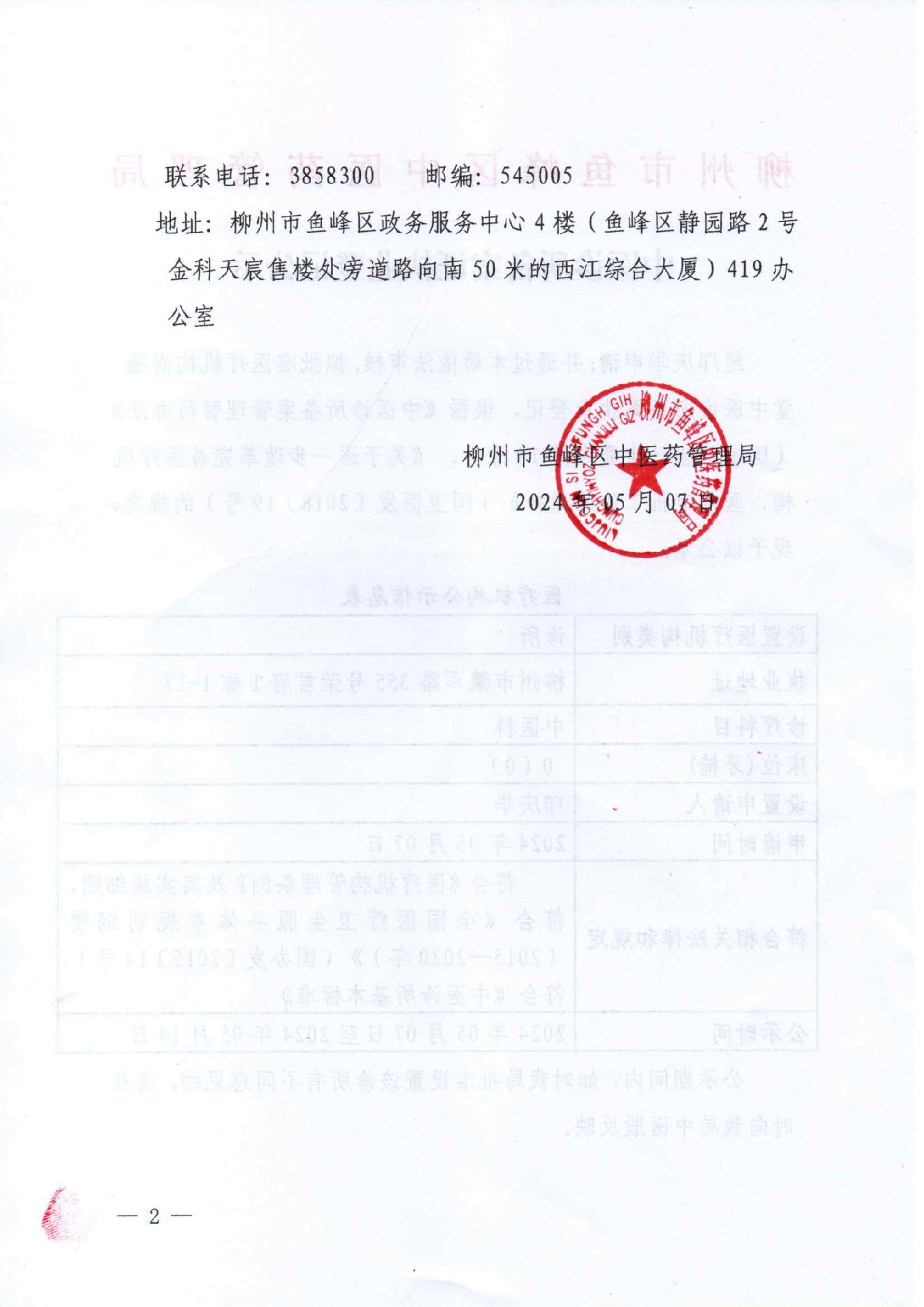 柳州市鱼峰区中医药管理局中医诊所备案证执业登记公示