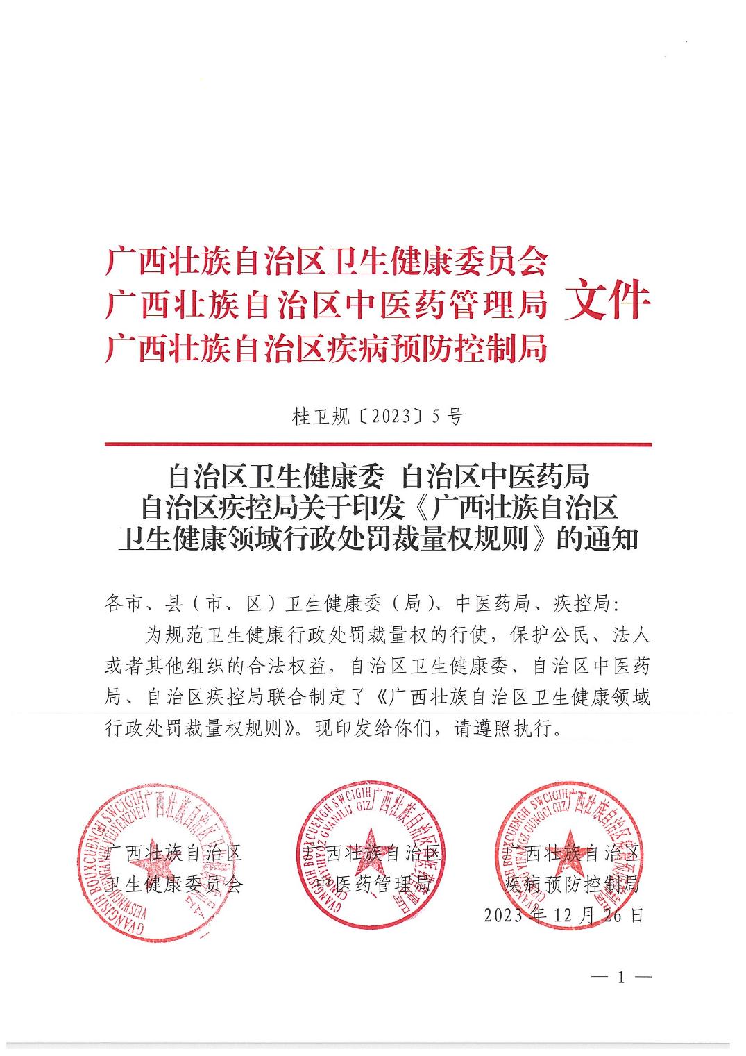 转发自治区卫生健康委自治区中医药局自治区疾控局关于印发《广西卫生健康领域行政处罚裁量权规则》的通知