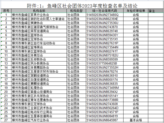 附件:1.鱼峰区社会团体2023年度检查名单及结论。