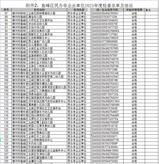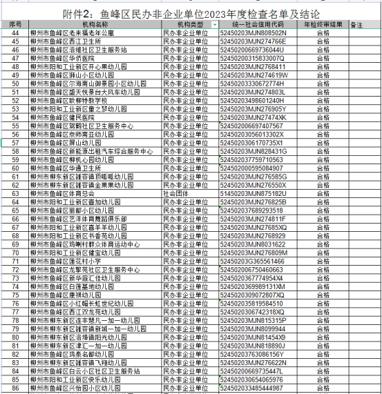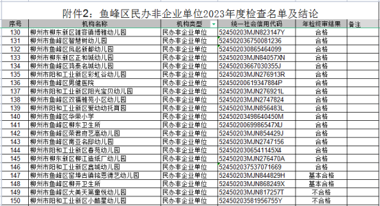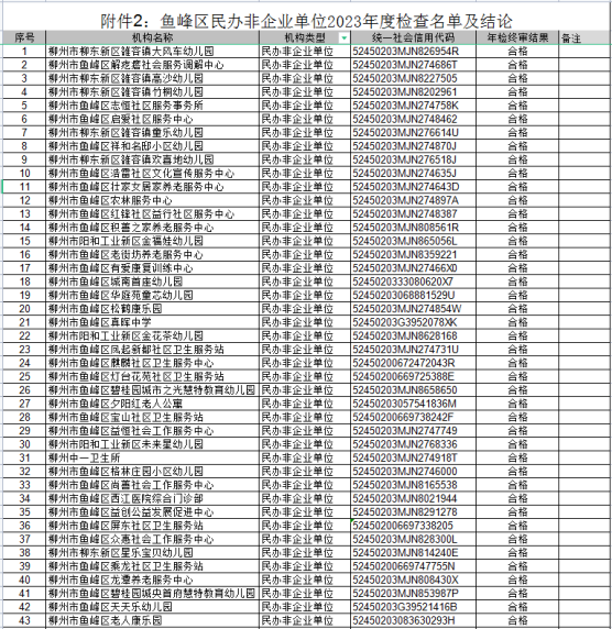 - 鱼峰区民办非企业单位2023年度检查名单及结论。