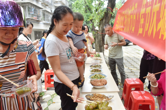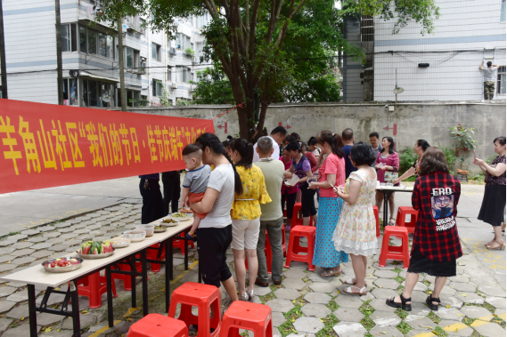 6月15日上午,鱼峰区羊角山社区为拉近居民距离,凝聚居民合力,以“邻里美食联盟”为主线,开展丰富多彩的美食民俗活动,联合小区自管小组开展羊角山社区“我们的节日·佳节庆端午”文化活动。各位当家主厨都拿出了自己的拿手好菜,社区志愿者也带来了精心准备的美食,让大伙儿菜还没上齐口水就已经先流出来了!好听的传统山歌节目,让大伙儿享受了一把“食+听”的传统文化盛宴。(五里亭街道羊角山社区 曾祥玉供稿)