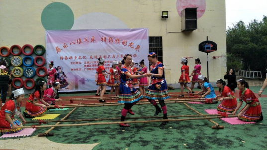 图为跳竹竿舞现场
