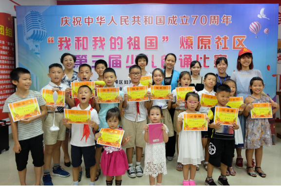 2019年8月16日上午,燎原社区举办“我和我的祖国”第三届少儿朗诵比赛。