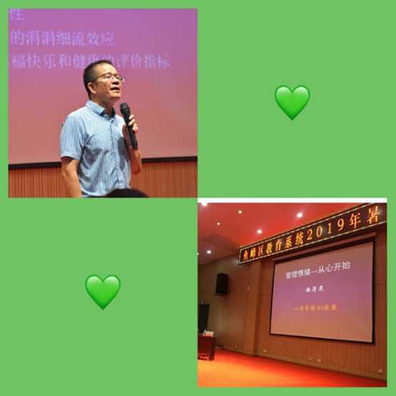 潘清泉博士首先从学校管理者情绪管理的意义,学校管理者情绪的来源,生活中负面情绪产生的原因等进行分析,让大家对情绪有进一步的认识,然后引导大家共同认识理性情绪理论模型,学习情绪管理的方法,进行情绪控制训练,让大家在生活及工作中通过改变观念、开阔视野、悦纳自己等方式做情绪的掌控者,积极的管理者,幸福的教育人。