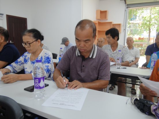 社区党委书记李爱凤向参会党员传达鱼峰区《关于开展鱼峰区党员干部主动承诺杜绝“违法建设”活动的通知》文件精神,解释“违法建设”政治工作的重要意义。接着,社区居委会主任李小霞带领大家认真学习《中华人民共和国城乡规划法》,要求大家对照相关法律规定进行自查自纠,并向社区汇报是否存在“违法建设”情况。李书记强调党员干部必须以身作则、率先垂范,自觉签订鱼峰区党员干部主动杜绝“违法建设”承诺书,做到“四带头、四严禁”,即带头承诺无“违法建设”情况、带头动员亲属自觉拆除、带头宣传相关政策、带头勇于担当,严禁谎报瞒报、严禁不按规定整改、严禁阻碍执法、严禁不作为乱作为。参会的党员们表示会全力支持党和政府的工作,并按照要求签订了承诺书。