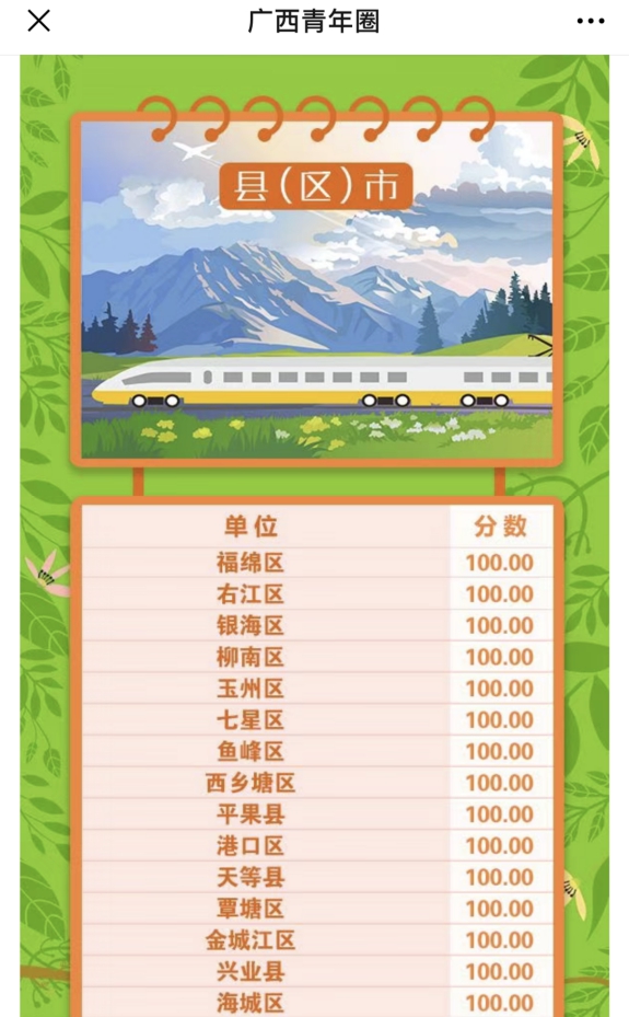 在青年大学习动员会上,团鱼峰区委书记钟俊峰从“为什么”要开展“青年大学习”,以及“学什么”“怎么学”等几方面对“青年大学习”行动提出了要求:一是要提高思想认识,深刻理解和把握开展青年大学习行动的重要意义;二是从严开展学习,以严肃的态度、严谨的学风、严格的督导推动青年大学习行动井然有序开展;三是要抓实学习效果,以扎实的内容、有效的抓手,确保青年大学习行动有成果。在第六季连续五期的“青年大学习”网上主题团课中,我们鱼峰区连续五期都以满分登上团广西区委排行榜,还在“广西青年圈”10月21日发表的文章中以“学霸甲”进行经验发言。