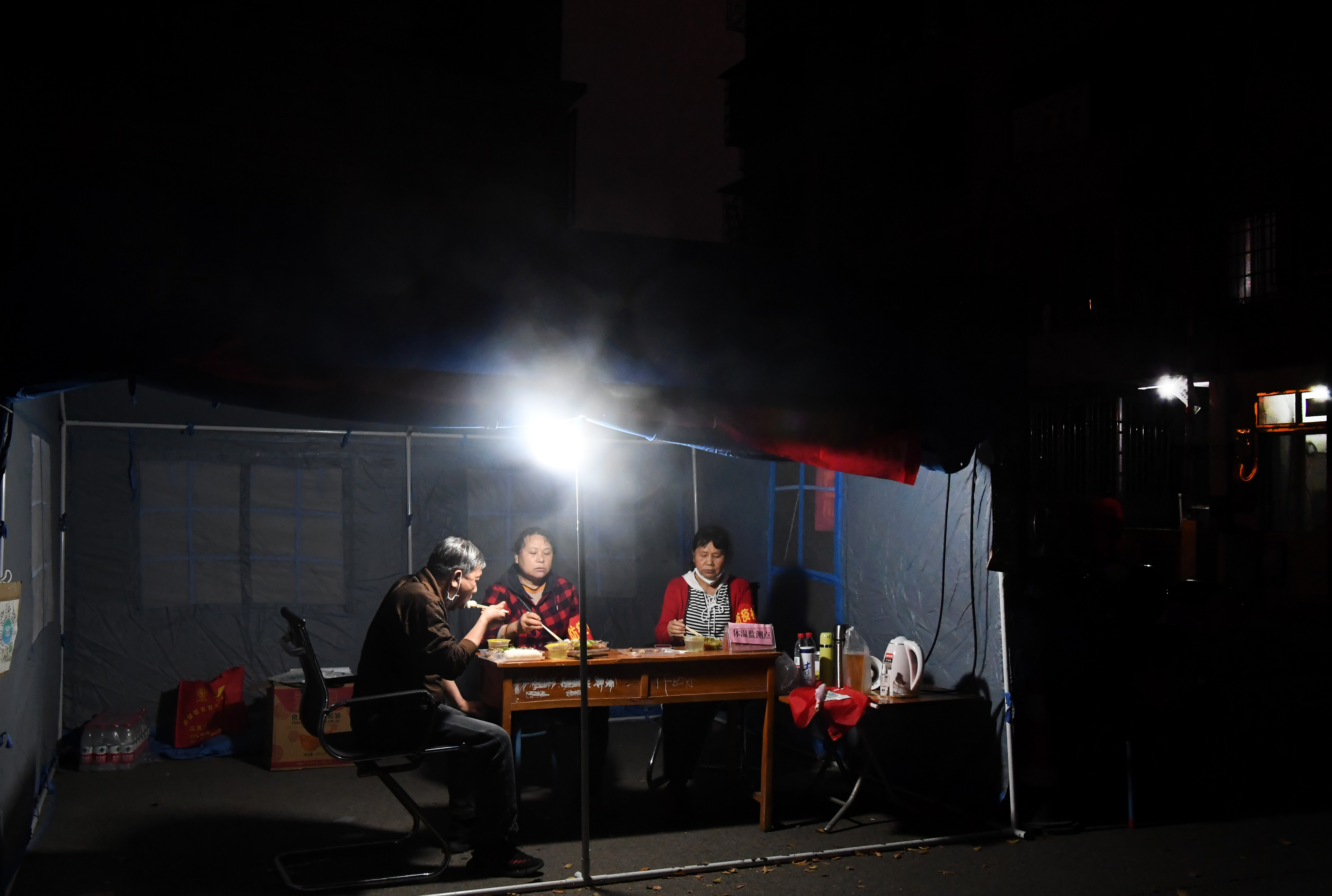 于是,一家六口开始分赴周边3个值守点,轮流值守。每次最少值守2小时,有时从下午四点到晚上十二点,一守就是8小时。手机24小时开机,哪怕在寒风冷雨天气,只要电话一响,他们就会以最快时间抵达值守点,做好防护准备后,拿着测温枪的手一次次抬起、放下,“给你添麻烦了,测一下体温,再扫码登记一下。”这句话也是重复了一遍又一遍。直到坚守70多个日日夜夜,疫情在4月底得到有效控制后,他们一家才撤离了值守点。