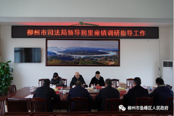 1月11日上午,柳州市司法局党组成员、副局长权仁儒带队到里雍镇调研指导人民调解、社区矫正工作。市司法局社区矫正管理科副科长杨圣宇、市司法局一级主任科员周勇参加调研。鱼峰区司法局局长王维,里雍镇党委副书记、镇长李华东,镇党委政法委员、武装部部长韦尚锦,里雍镇司法所所长韦鹏飞陪同调研。