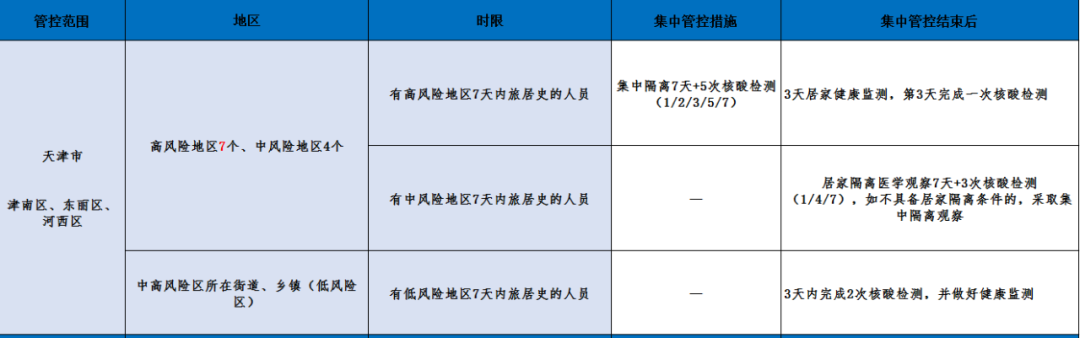 采取7天集中隔离医学观察(进入隔离场所后第 1、2、3、5、7天各进行 1 次核酸检测)+3 天居家健康监测(第 3 天进行 1 次核酸检测)。
