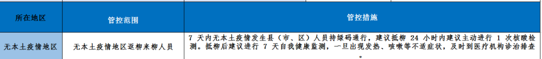 *风险排查和管理对象:自确定为中高风险地区或自公布本土疫情之日往前7天的返柳来柳人员。