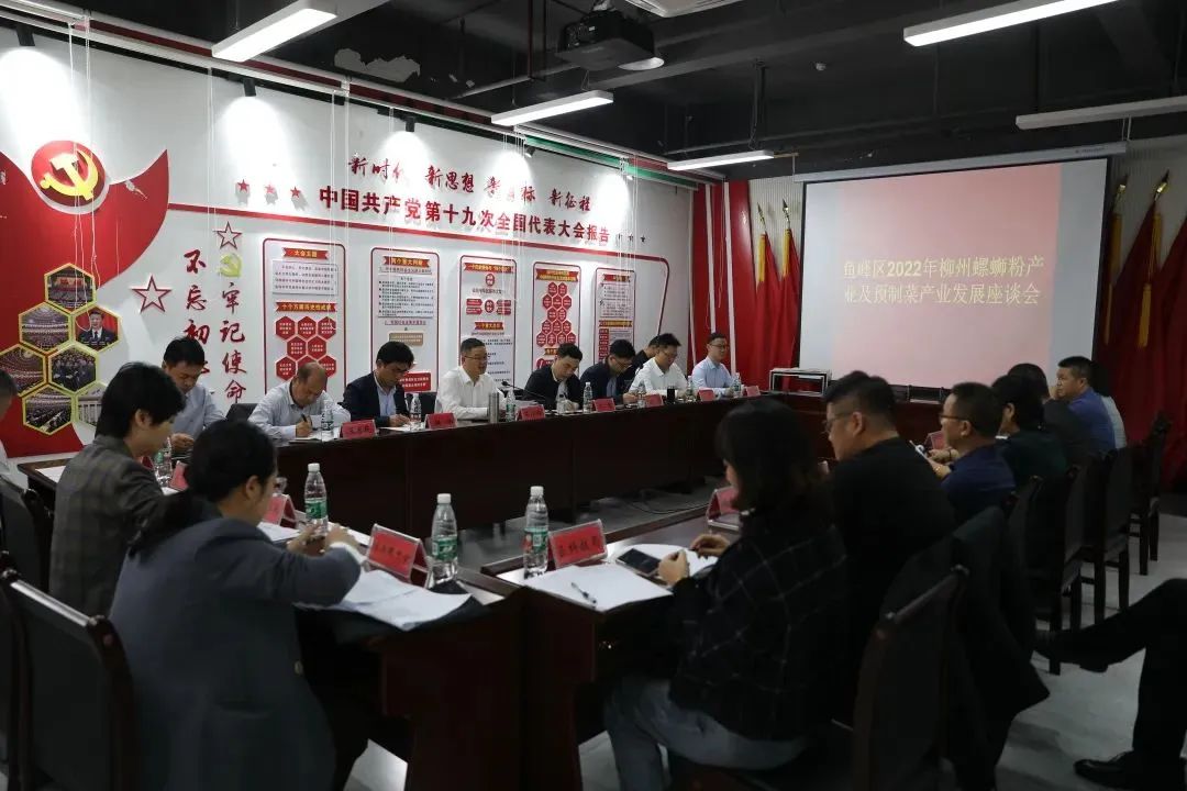11月22日上午,鱼峰区召开柳州螺蛳粉产业及预制菜产业发展座谈会。会议邀请了柳州螺蛳粉博士服务团成员出席。区委书记石小松出席会议并讲话;区委常委、组织部部长罗炜,区政府副区长莫慧明及相关单位主要负责同志参加会议。