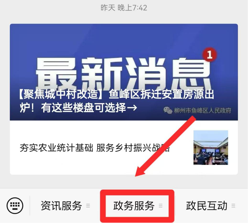 1.关注“柳州市鱼峰区人民政府”微信公众号。