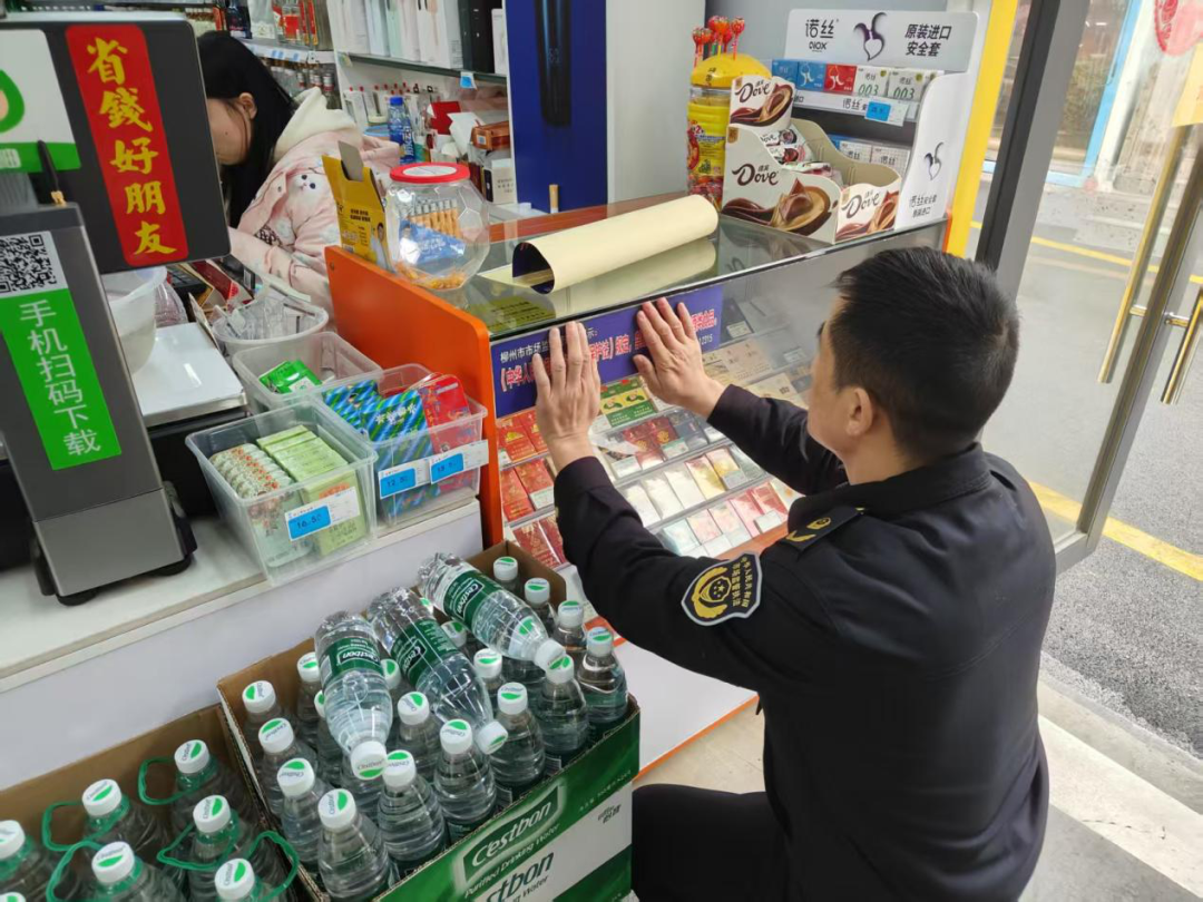 以校园周边150米的文具店、食杂店、便利店、超市等经营主体开展检查,重点检查食品、儿童玩具、学生用品等质量安全,严厉打击无证照经营、向未成年人无底线营销食品、烟、酒以及不利于未成年人身心健康的书籍等违法行为。同时,执法人员在经营场所的显著位置张贴“禁止向未成年人销售酒类食品”标识标语的宣传单,督促各经营主体增强守法意识,切实承担起社会主体责任,保护未成年人身心健康成长。共检查各类经营单位68家次,张贴标识标语宣传资料68份。