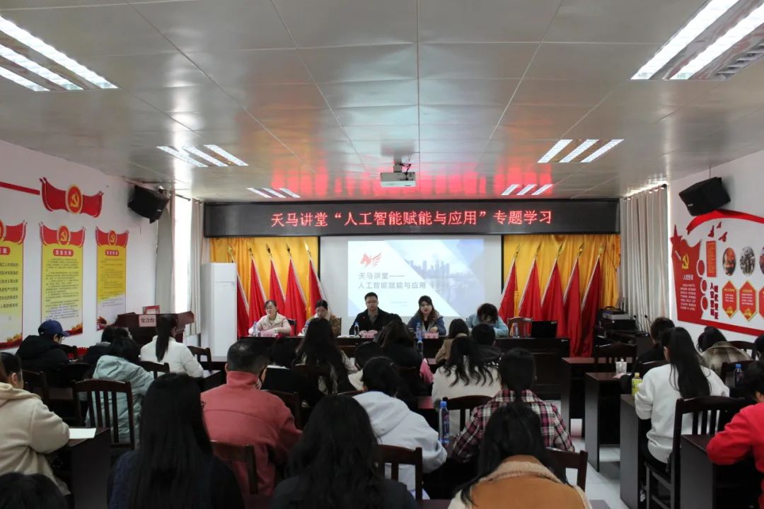 为更好地贯彻上级“人工智能+”赋能千行百业工作部署,促进街道、社区工作质效大提升, 3 月 19 日上午,天马街道依托天马讲堂举办“人工智能赋能与应用”专题学习,街道领导班子、全体干部职工及各社区书记、工作人员等70余人参加。