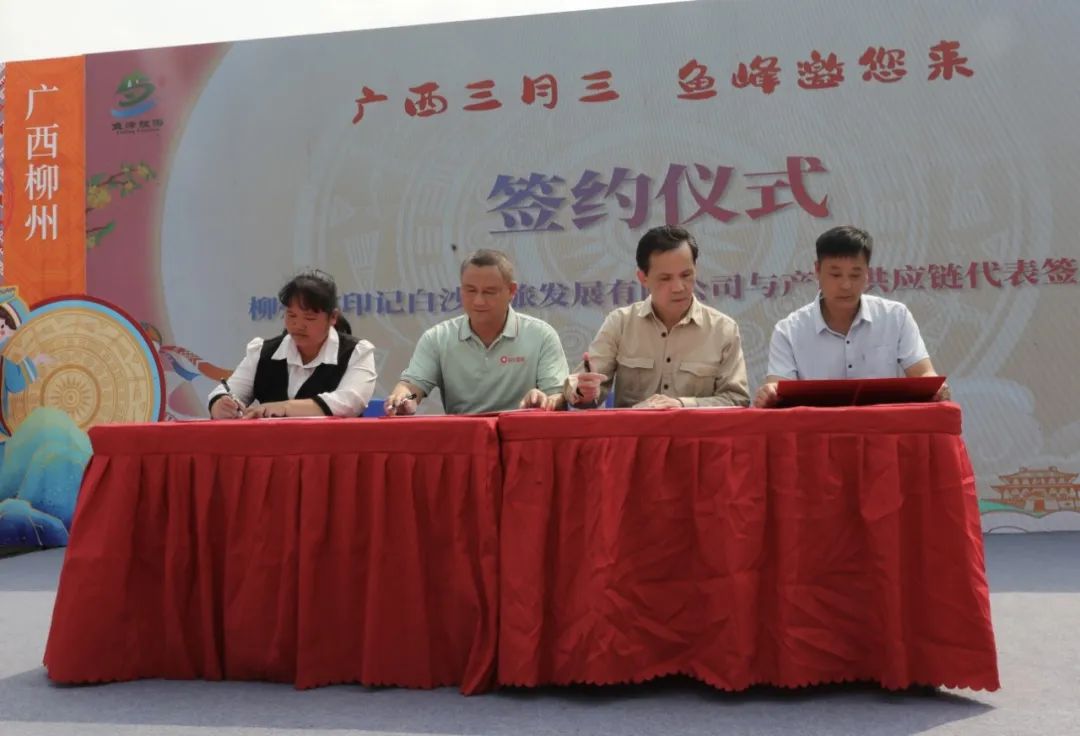柳州市印记白沙文旅发展有限公司与柳州国旅国际旅行社有限责任公司、柳州市青年旅行社有限责任公司、柳州壶城职工国际旅行社有限责任公司、广西创跃产业园发展有限公司、柳州市鸿鹄土地整治服务股份有限公司、白沙社区种植大户签署合作协议