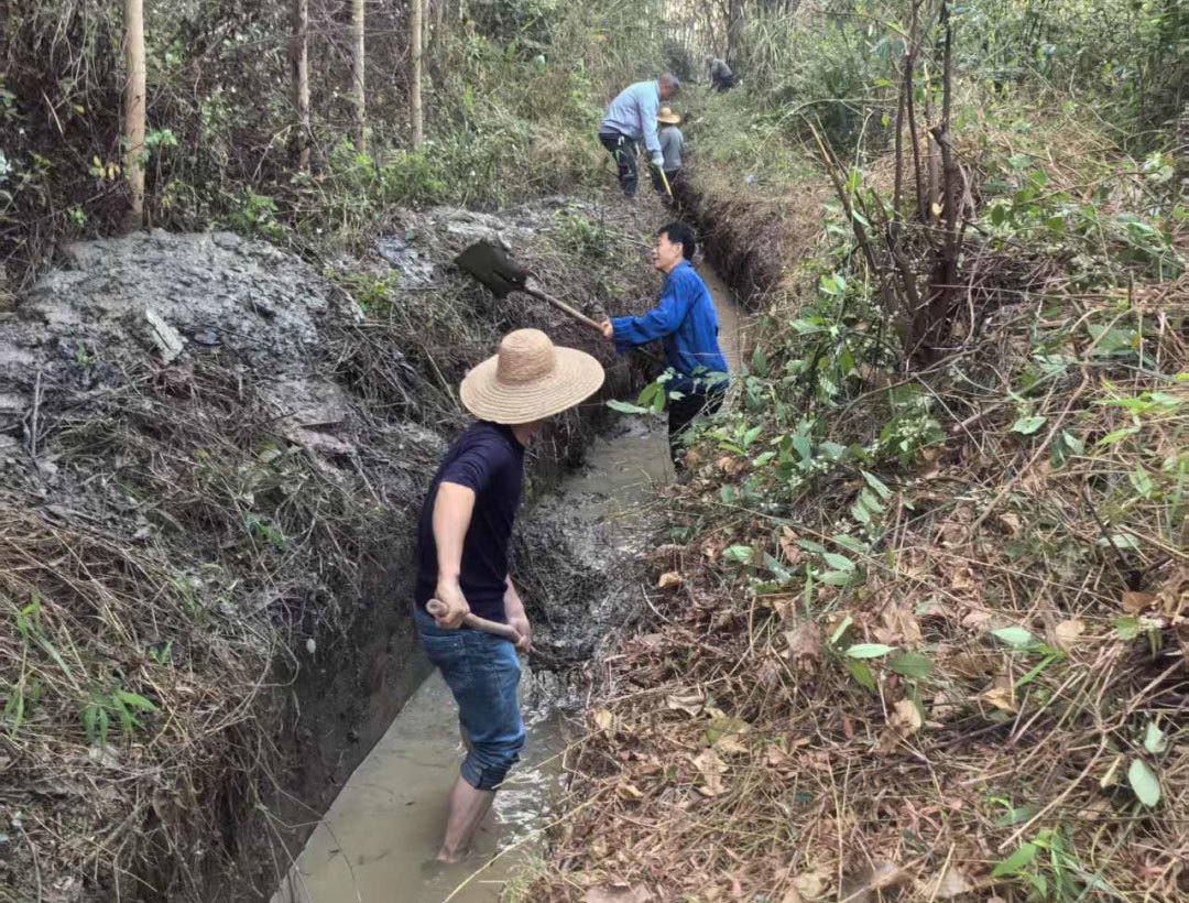 面对旱情,雒容镇各级党组织和广大党员闻“旱”而动,建立由“镇党委牵头、支部攻坚、党员冲锋、群众响应”的四维作战体系。竹车屯、先锋屯、尚东屯等5个党支部组织40余名党员群众开展联合作业,完成西沟、东沟2000多米的渠道清淤工作,随着上游降水,水渠恢复通水,9个自然屯的600余亩农田灌溉需求得到初步保障。