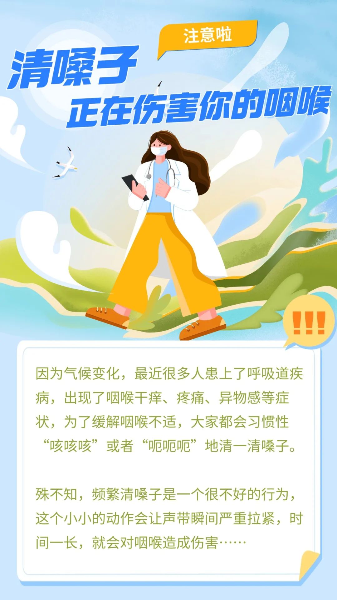 清嗓子时,气流猛烈地振动声带,可能造成声带损伤,加重不适,导致嗓音沙哑。若造成声带充血、水肿,可能引发声带小结或声带息肉,严重时甚至会导致急性、慢性咽炎。
