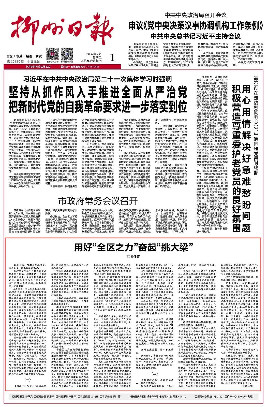 7月1日,《柳州日报》头版版面图