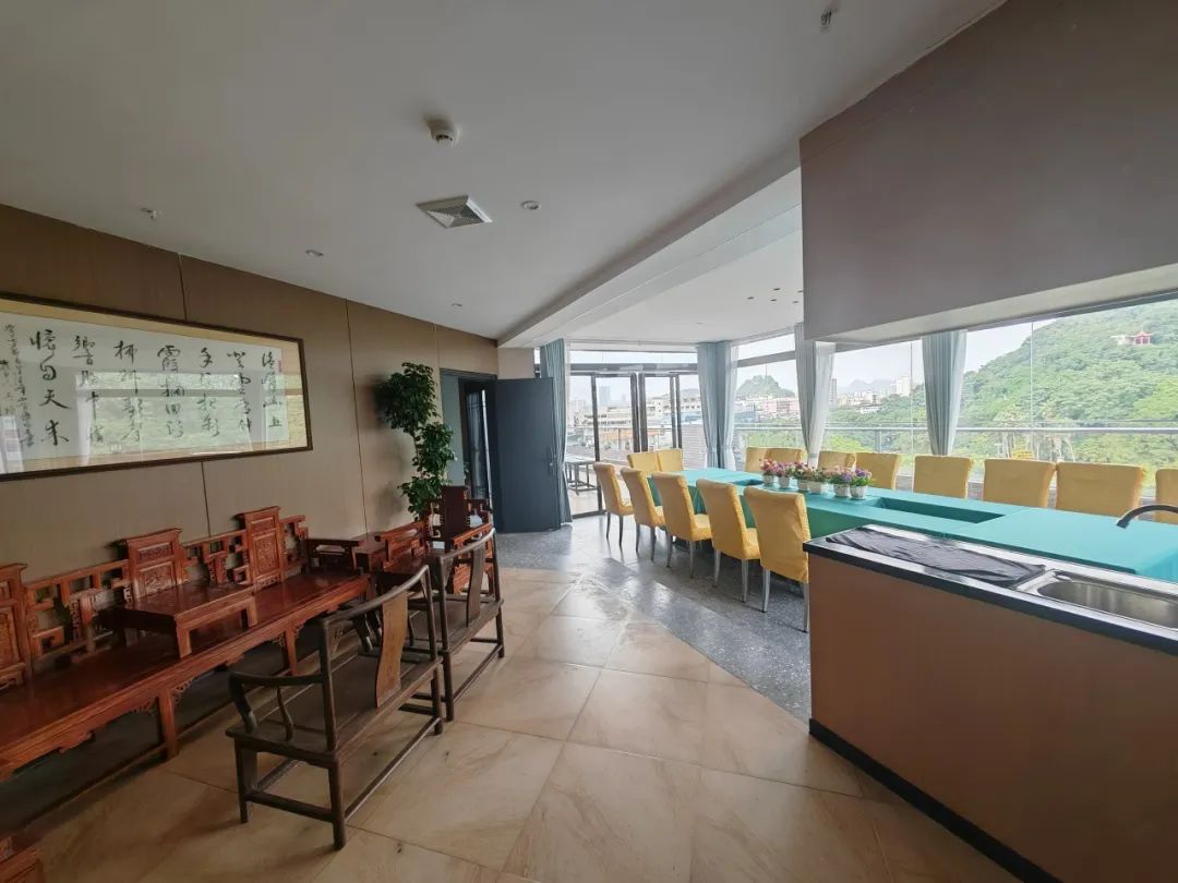 通透的玻璃阳光全景房可容纳30余人,内设休息区且空调全天开放,冬暖夏凉,能遮风挡雨。