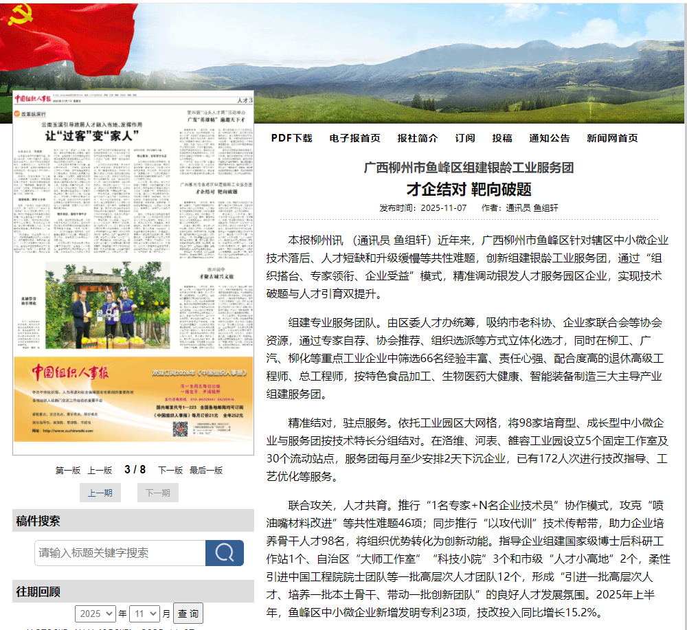 近日,《中国组织人事报》刊发《鱼峰区组建银龄工业服务团“才企结对 靶向破题”》经验做法文章。