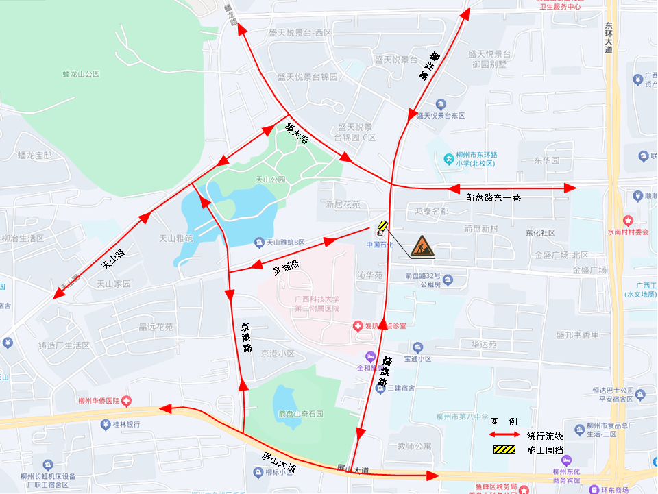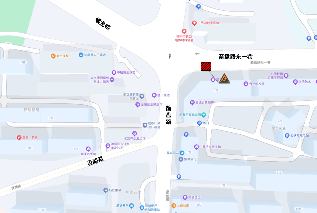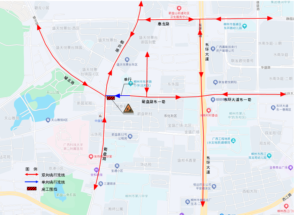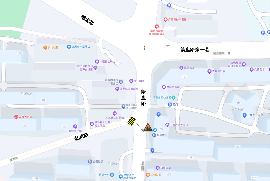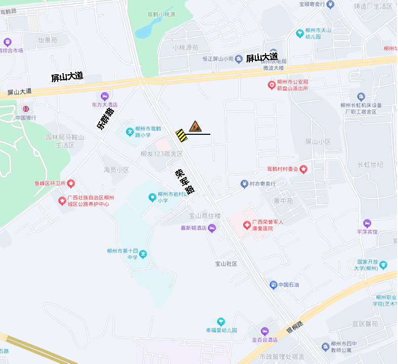 施工地点:荣军路(柳州卷烟厂宿舍前路段)。施工期间,东侧人行道实行全封闭施工。