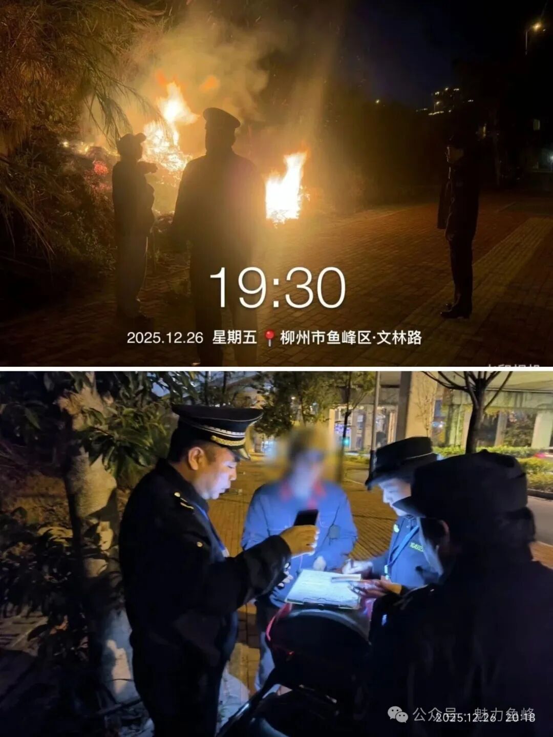 鱼峰区综合行政执法局持续强化立体化巡查与部门联动,科技协查高效推进执法工作。2026年1月14日18时许,雒容农场区域出现露天焚烧秸秆(甘蔗叶)火点,现场火光冲天、浓烟滚滚。执法人员接到线索后高度重视,当即立案调查,并联合公安部门通过“天眼”系统迅速锁定违法当事人。次日,执法人员在派出所民警配合下,找到了露天焚烧当事人,其解释称承包该地块用于种植甘蔗,焚烧甘蔗叶是为了堆积肥料,并表示“看到没有明火我才走的”。经过执法人员的普法教育,当事人承认了其违法事实,深刻认识到自己的错误。其行为违反了《中华人民共和国大气污染防治法》第七十七条规定,依据相关规定执法人员作出责令立即改正并处罚款2000元的行政处罚。
