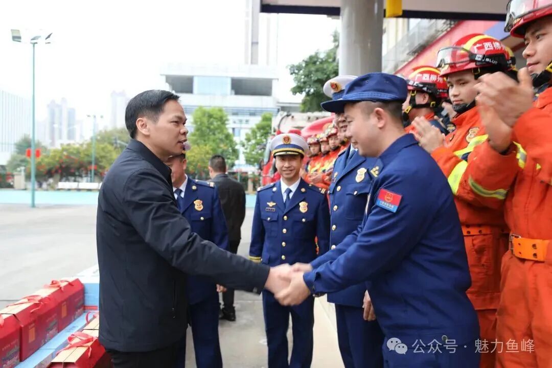 在消防救援局,慰问组与一线救援人员亲切交流,详细了解执勤备战、日常训练、生活保障及节日安保部署情况,对他们全年枕戈待旦、快速响应,在火灾防控、抢险救灾、服务发展等方面冲锋在前、担当作为,守护辖区消防安全与群众生命财产安全的担当奉献致以诚挚感谢,希望全体消防指战员要继续发扬优良传统、保持过硬作风,强化风险防范,完善应急预案,筑牢安全防线,为辖区社会和谐稳定和群众安居乐业提供更加坚实有力的安全支撑。