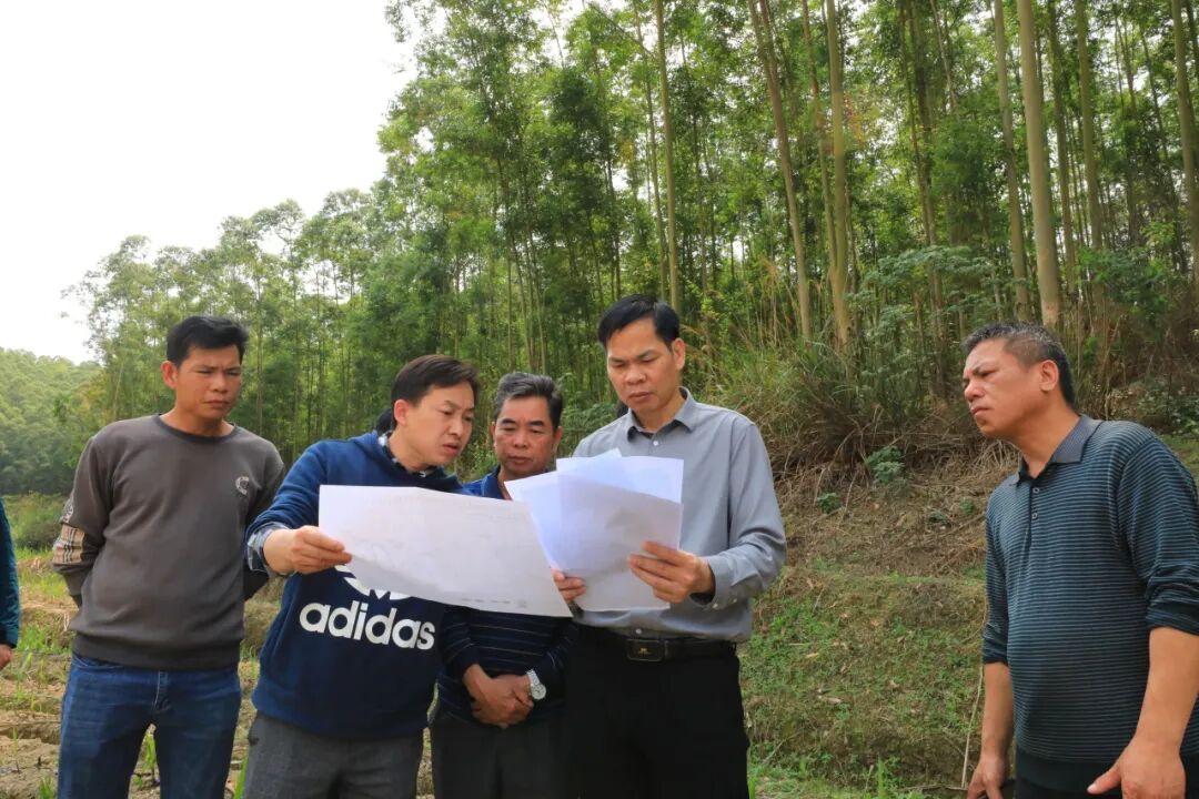 钟云一行在富龙村查看纠纷地块情况