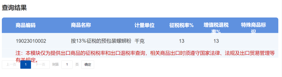 △ 国家税务总局官网可查询到“预包装螺蛳粉”对应的编码。