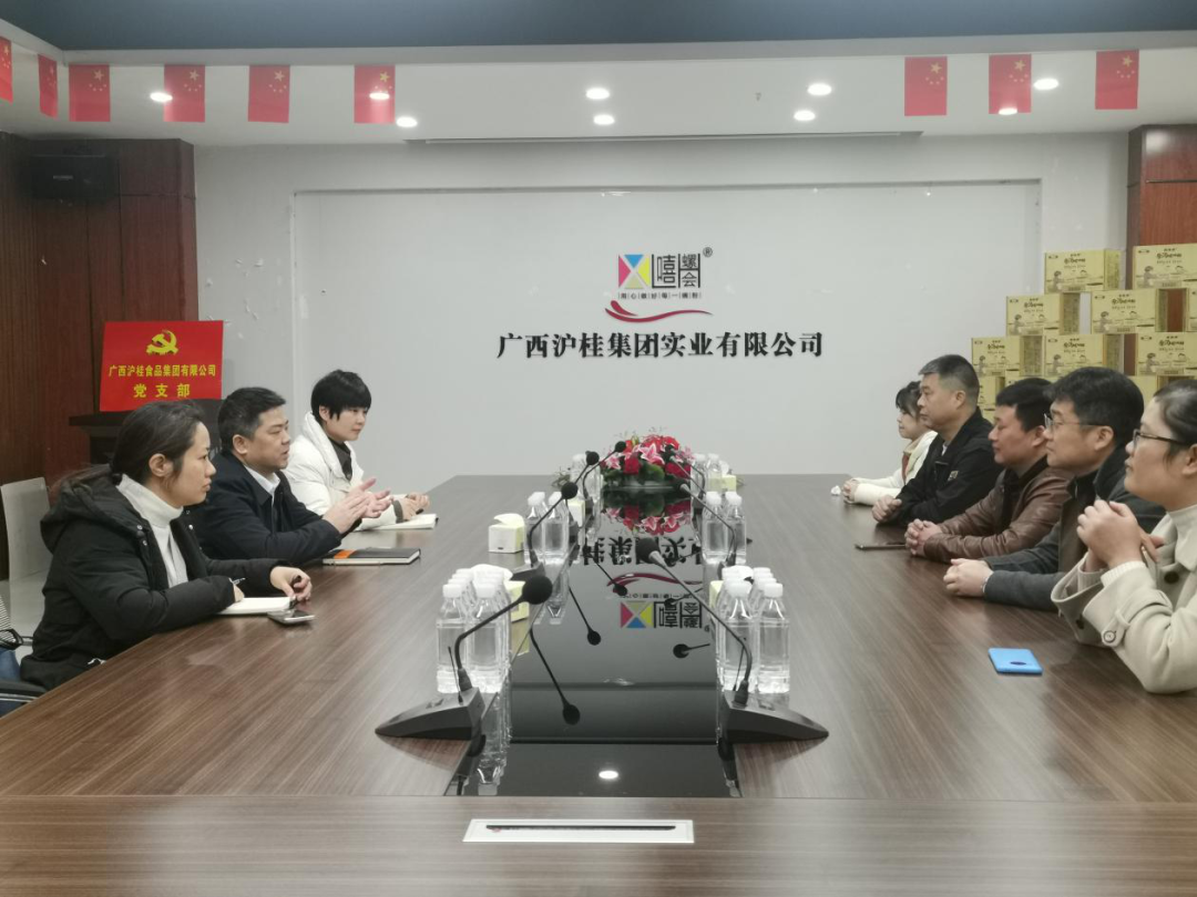2月14日,鱼峰区区长彭继军带队到沪桂食品集团开展企业服务活动,洛维园区管委会副主任李飞龙、区政府办主任龚宇、区工信局局长李君陪同参加。