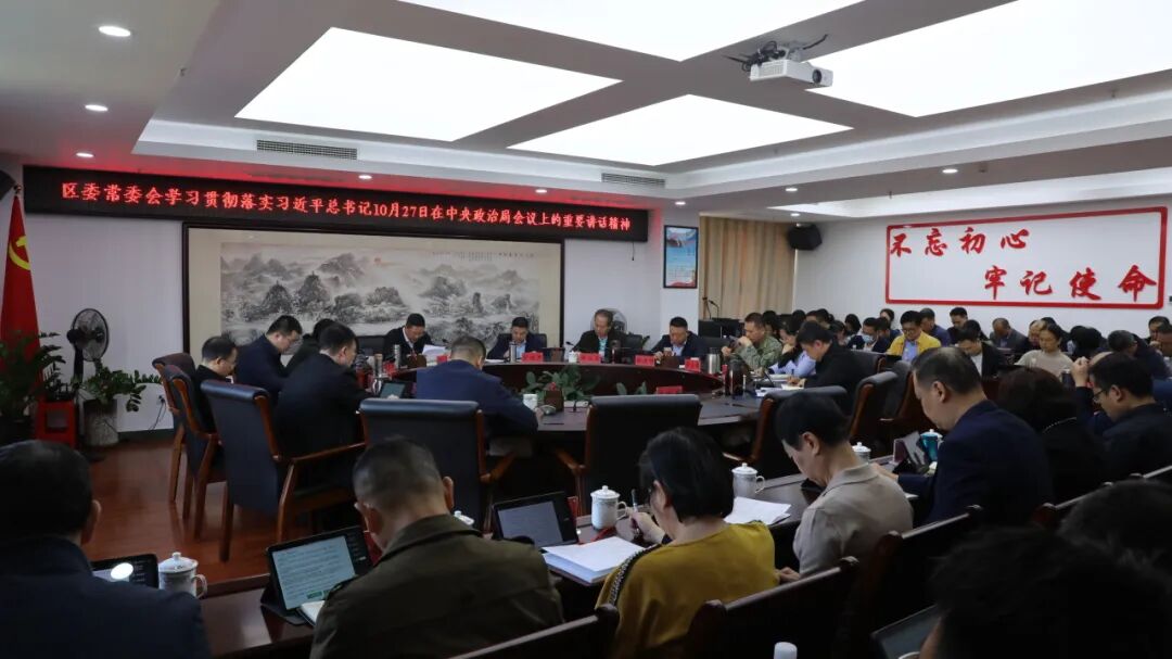 会议学习贯彻落实习近平总书记10月27日在中央政治局会议上、在北京、河北考察灾后恢复重建工作时,在进一步推动长江经济带高质量发展座谈会和江西考察时的重要讲话精神,研究部署鱼峰区贯彻落实。