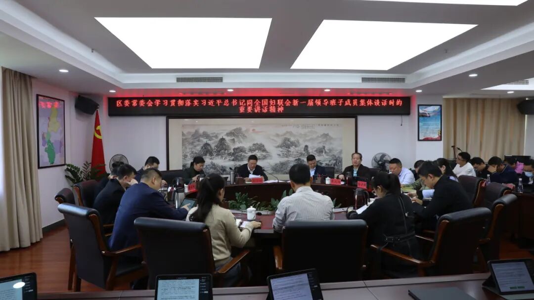 会议学习贯彻落实习近平总书记对妇女儿童工作的重要指示精神,习近平总书记同全国总工会和全国妇联新一届领导班子成员集体谈话时的重要讲话精神,听取全区工会工作和新时期产业工人队伍建设改革工作、全区共青团、少先队工作、全区妇联工作情况汇报,研究部署下一步工作。