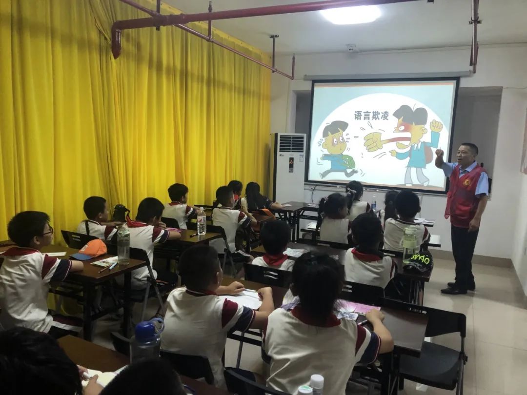 为进一步树立学生的法治观念,增强安全防范意识,提高自护能力,预防学生欺凌事件的发生,7月10日下午,柳州市鱼峰区箭盘山街道东化社区关工小组联合东环路小学开展了以“拒绝学生欺凌,做阳光青少年”为主题的法治教育专题宣讲。