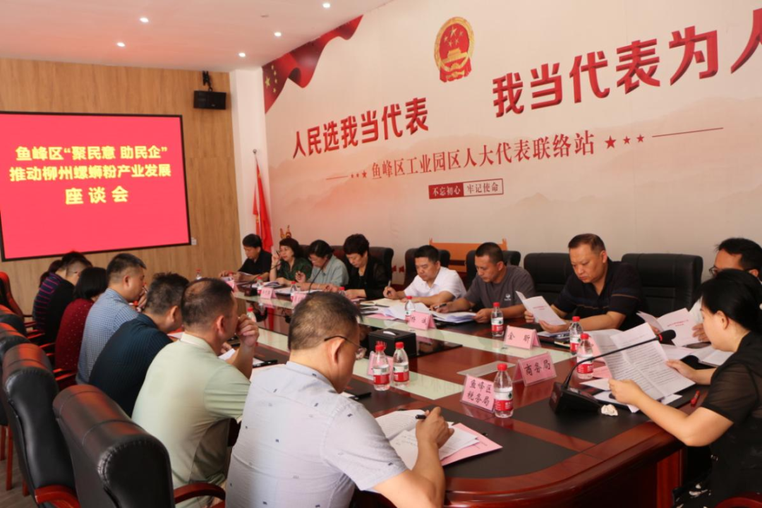 为庆祝全国人民代表大会成立70周年,近日,鱼峰区人大常委会在鱼峰区工业园区人大代表联络站召开“聚民意 助民企”推动柳州螺蛳粉产业发展座谈会。会议由鱼峰区人大常委会主任郑艺萍主持。驻柳州市人大常委会建设铸牢中华民族共同体意识示范区人大代表联系点的代表、驻鱼峰区工业园区人大代表联络站的代表,区人大常委会领导班子,区人大各专(工)委负责人,区工业园区管委会、鱼峰税务分局和区政府相关部门,及里雍镇、白沙镇相关负责人参加座谈会。