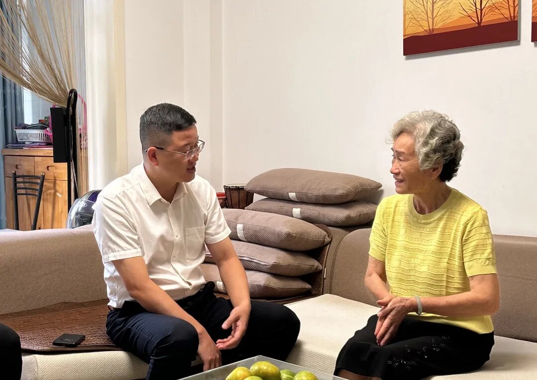 在退役军人吴奕家中,郑艺萍详细询问了他的身体健康状况以及日常生活情况,并认真倾听了吴奕对退伍军人服务保障工作的宝贵意见和建议。