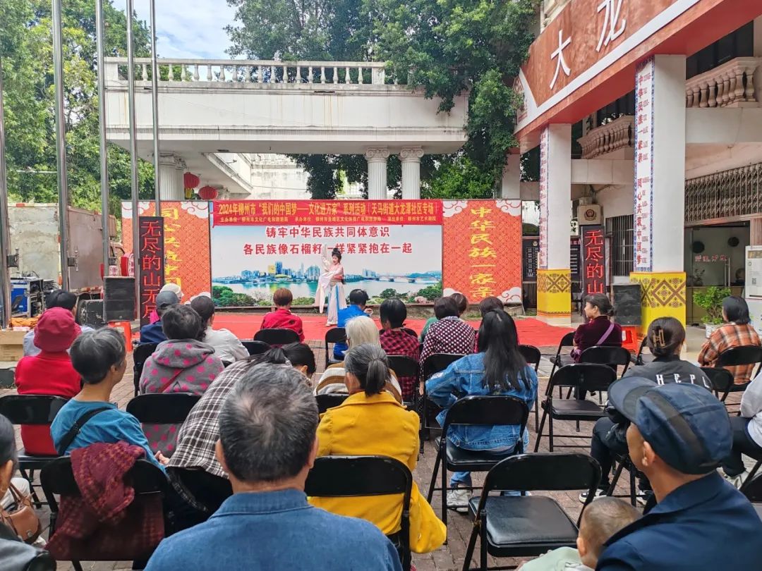 为进一步铸牢中华民族共同体意识,构筑中华民族共有精神家园,传承弘扬中华优秀传统文化,10月28日上午,由柳州市文化广电和旅游局主办,鱼峰区文化体育广电和旅游局承办的2024年“我们的中国梦——文化进万家”系列活动在大龙潭社区门前小广场精彩上演,为大龙潭社区居民送上了一场丰盛的戏曲文化盛宴。