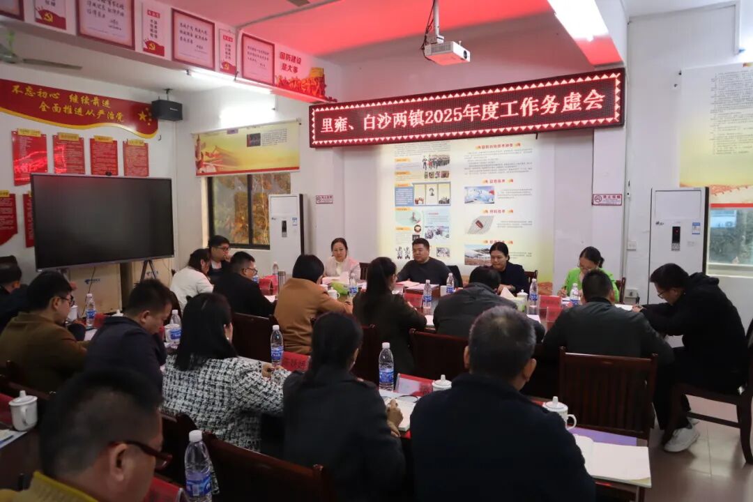 随后,彭继军一行来到白沙镇召开座谈会,听取里雍镇、白沙镇2025年工作思路和工作措施,并同与会的两镇班子领导座谈交流。