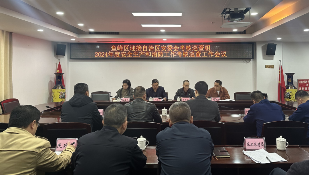 考核巡查组在鱼峰区召开座谈会议,听取了鱼峰区关于2024年度安全生产和消防工作的情况汇报。通过个别座谈的方式,对应急、消防、住建、交通等11个重点行业领域主管部门安全生产工作情况进行全面细致了解,并对工作薄弱环节和下一步工作重点,提出了指导性意见。
