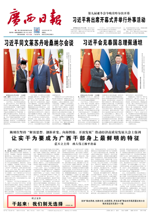 聚焦“经济高质量发展”主题,2025年的广西新春第一会,进一步树立起鲜明导向:实干为要、创新为魂,用业绩说话、让人民评价。