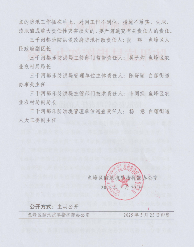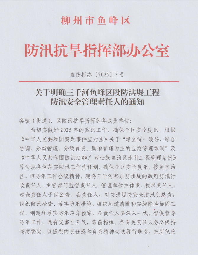 - 鱼防指办〔2022〕2号 关于明确2025年三千河鱼峰区段防洪堤工程防汛安全管理责任人的通知