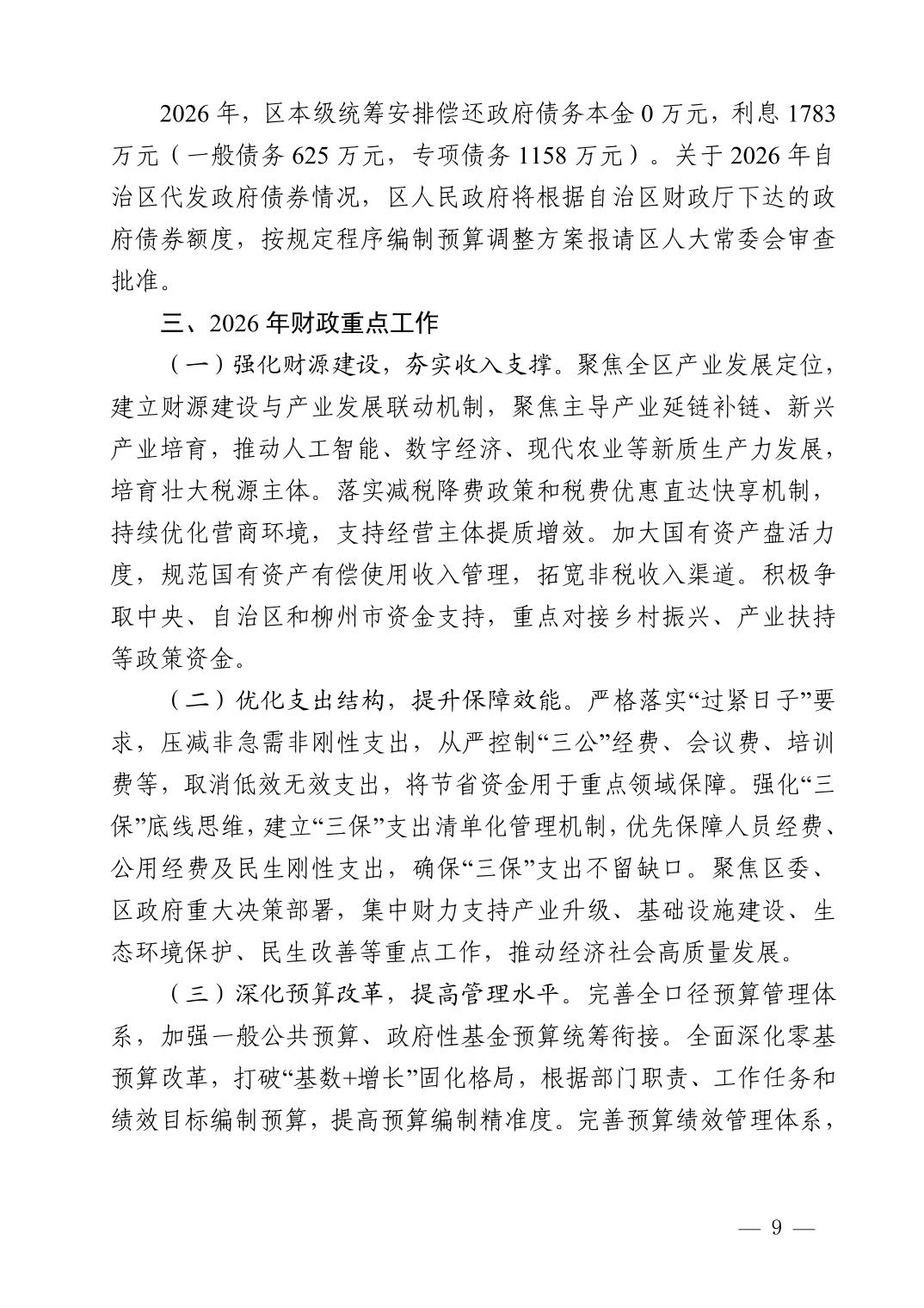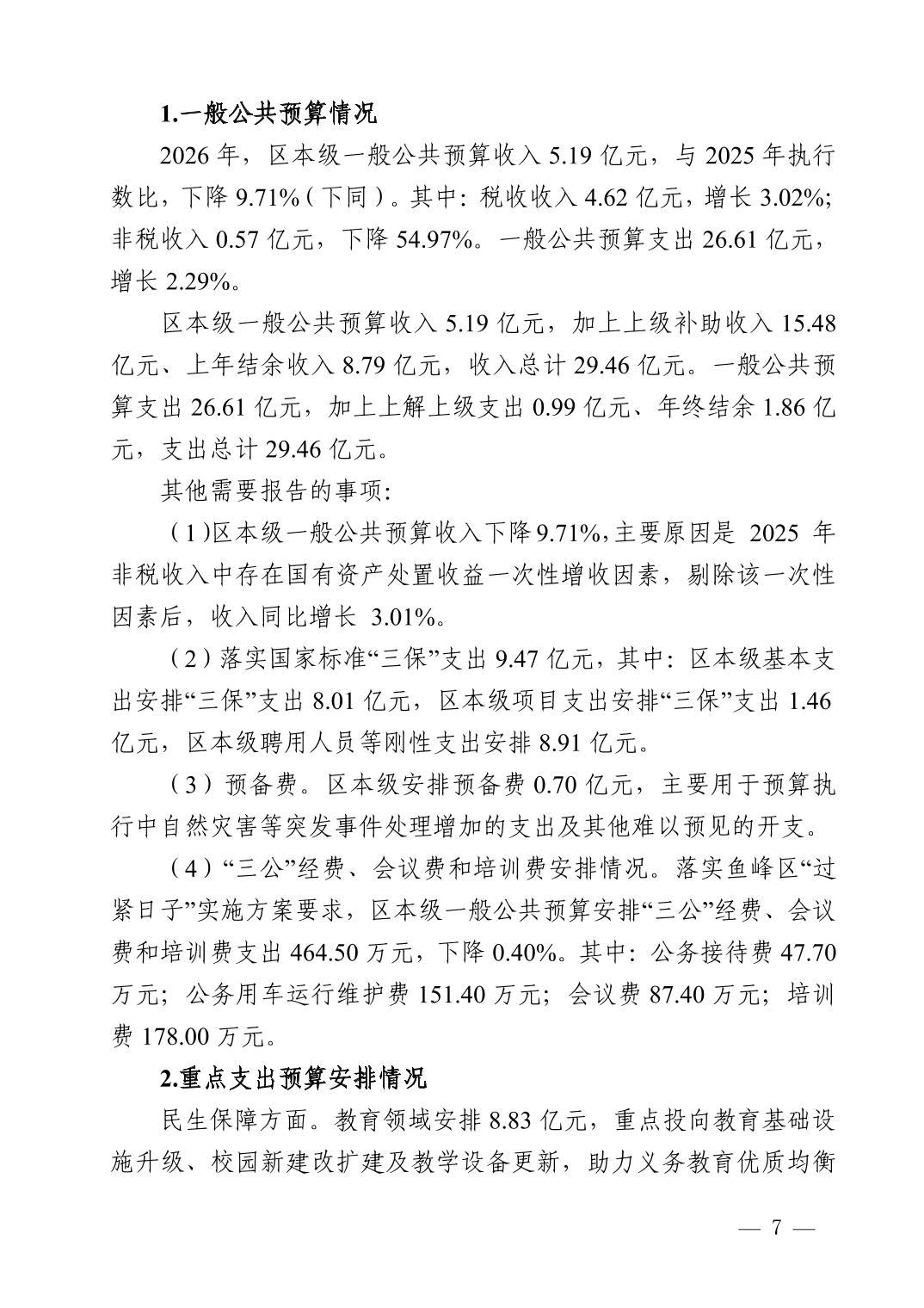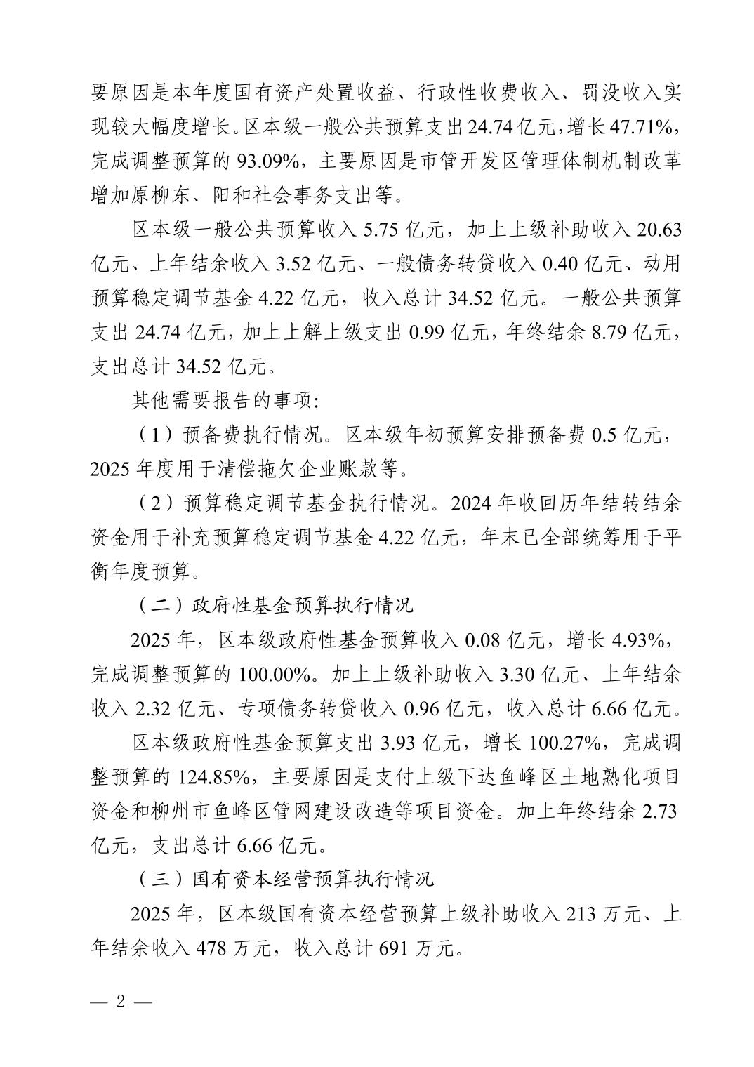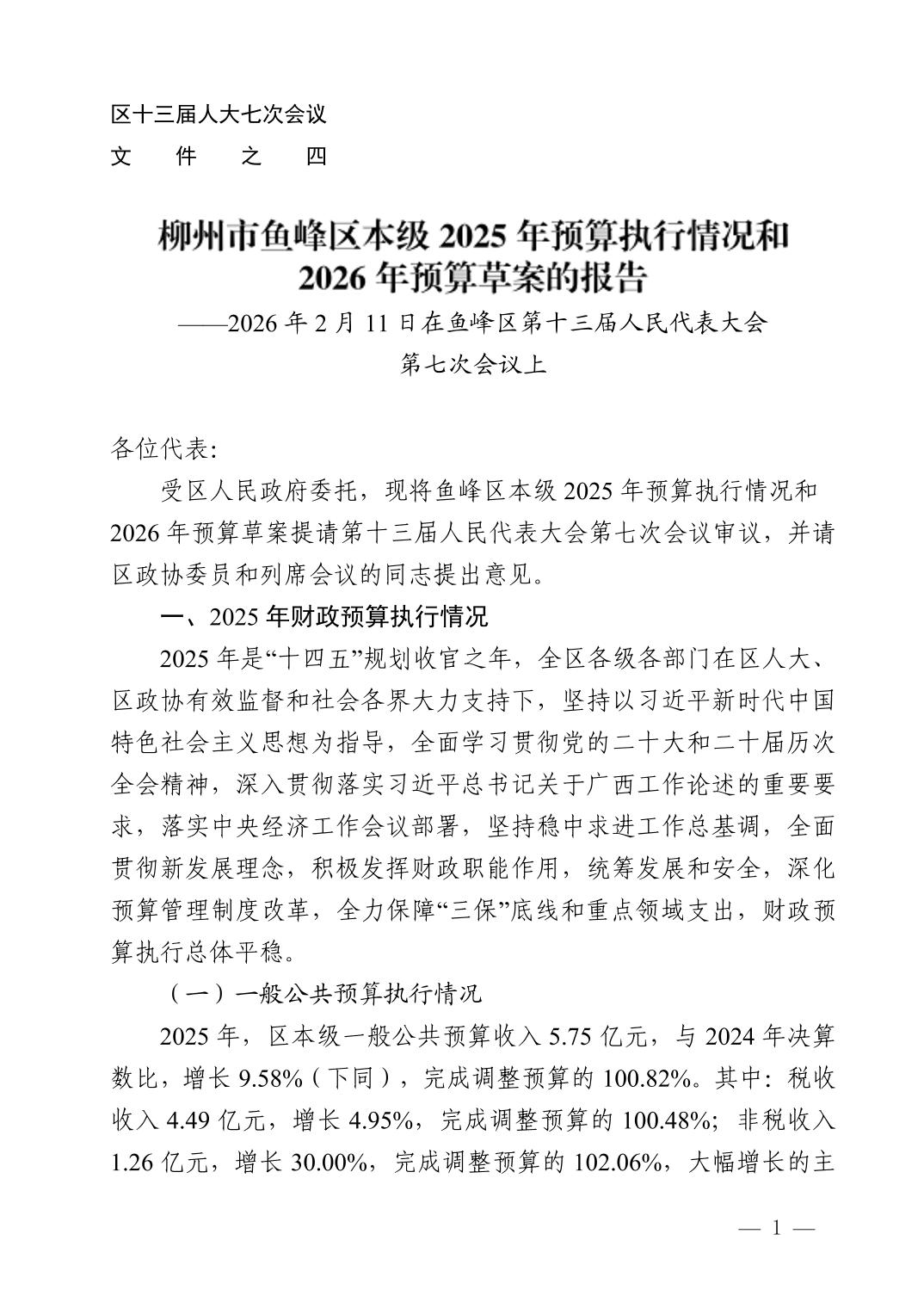 柳州市鱼峰区本级2025年预算执行情况和2026年预算(草案)的报告