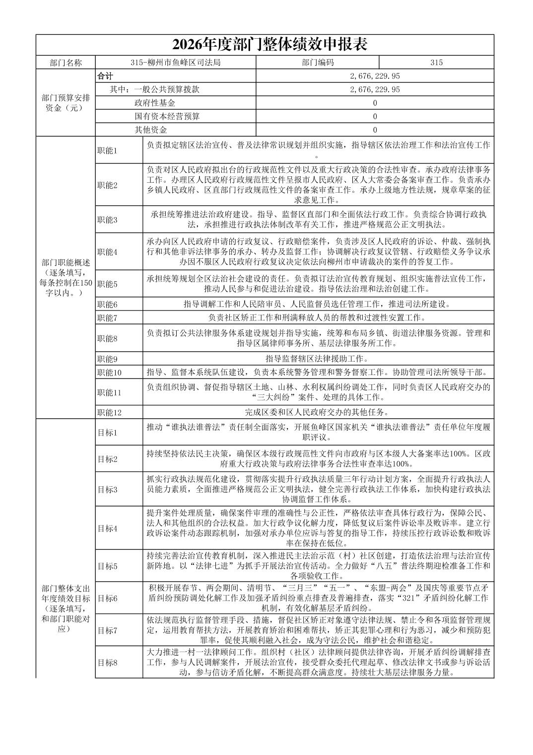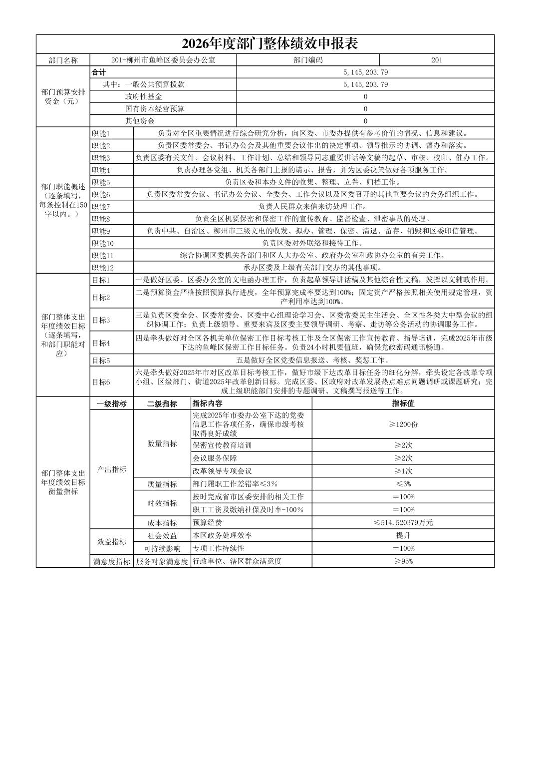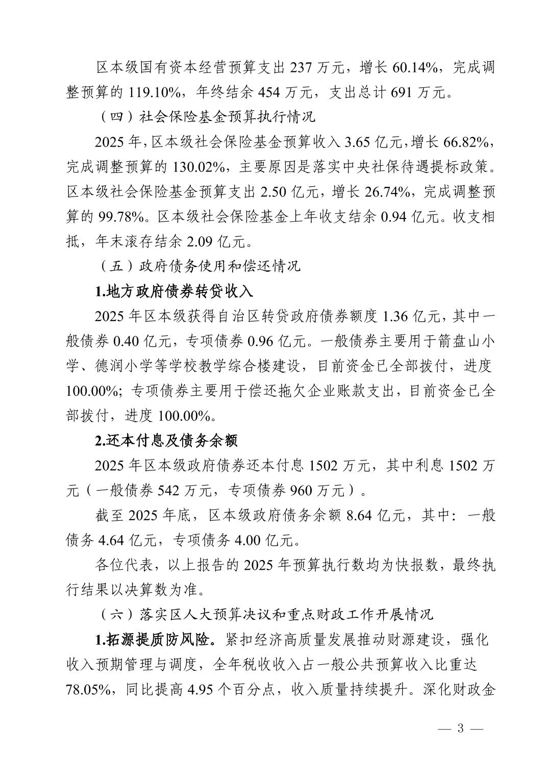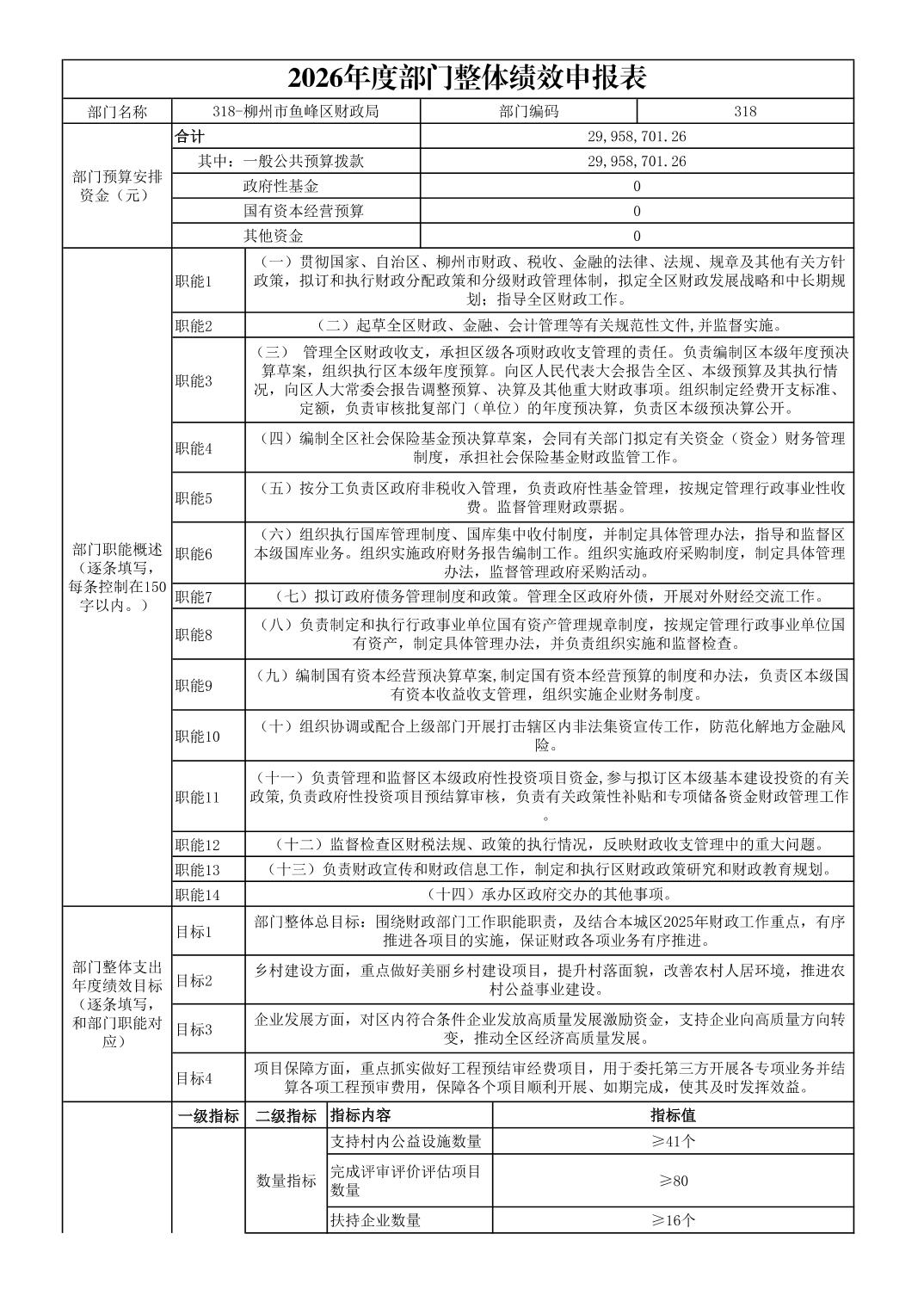 柳州市鱼峰区本级2025年预算执行情况和2026年预算(草案)的报告