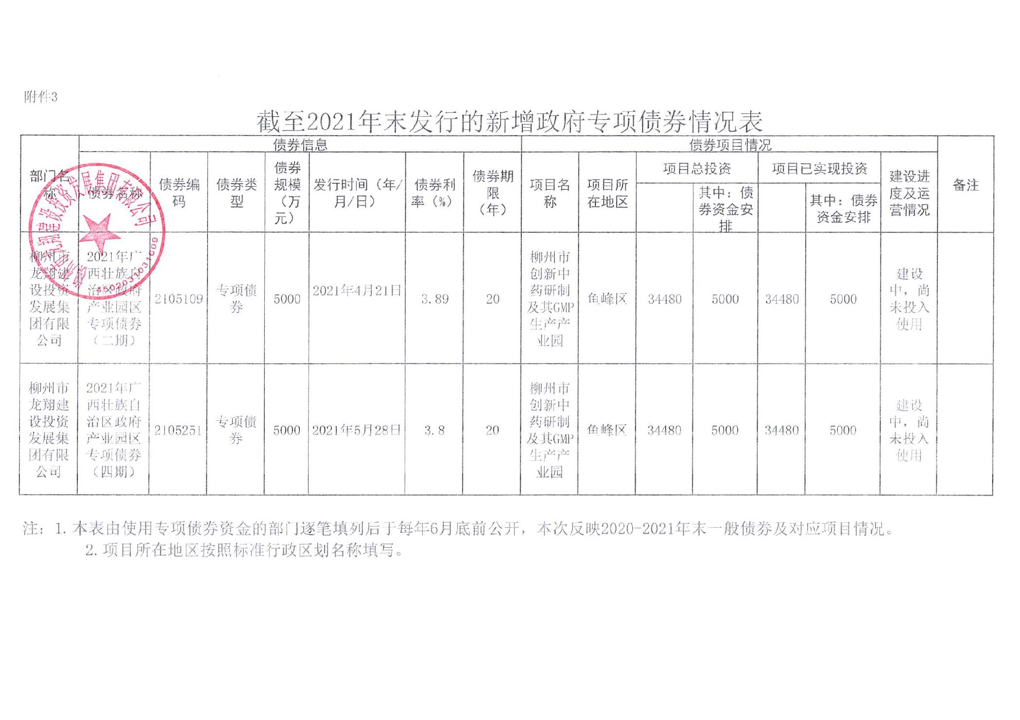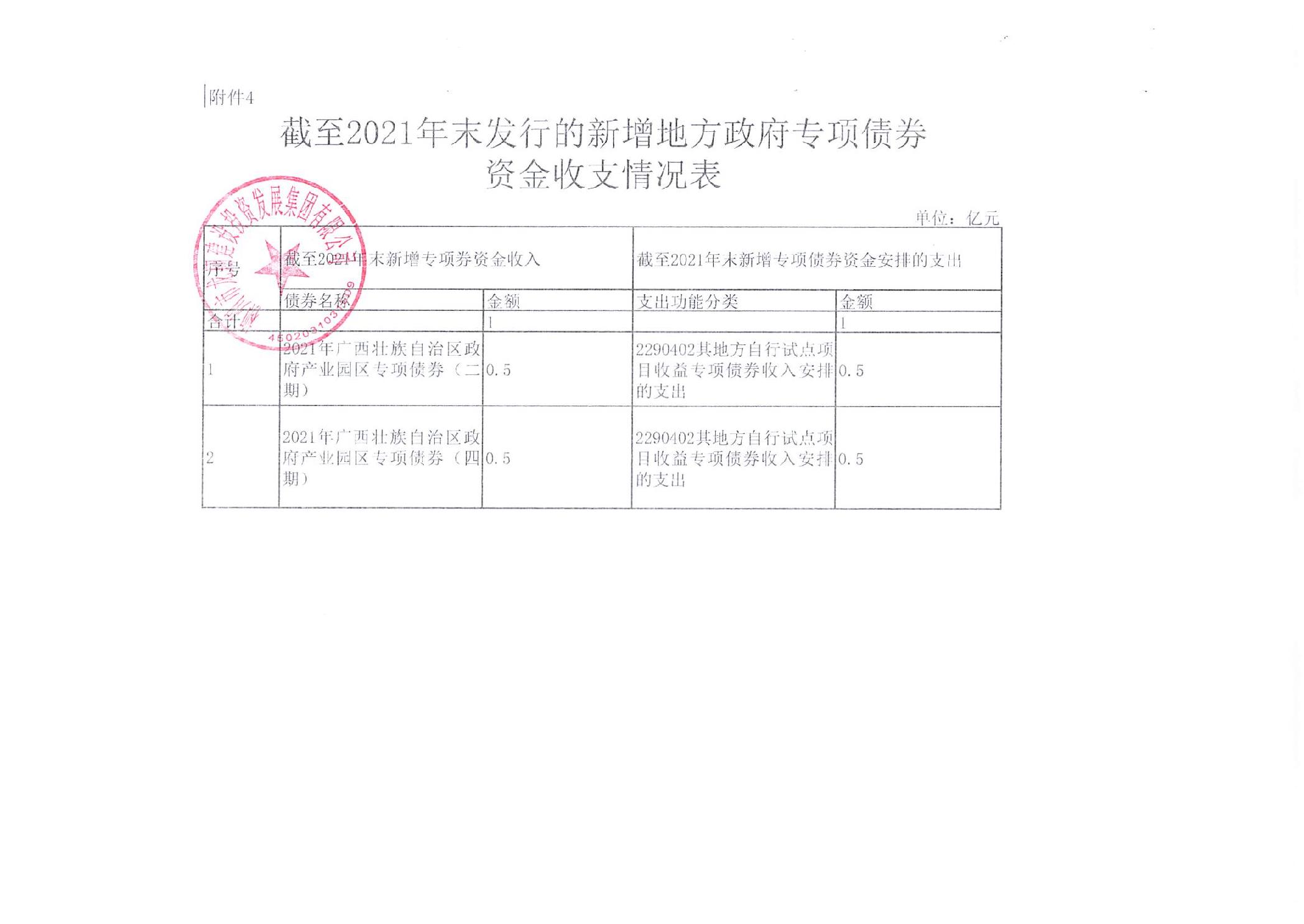 2021年末发行的新增地方政府专项债券资金收支情况表