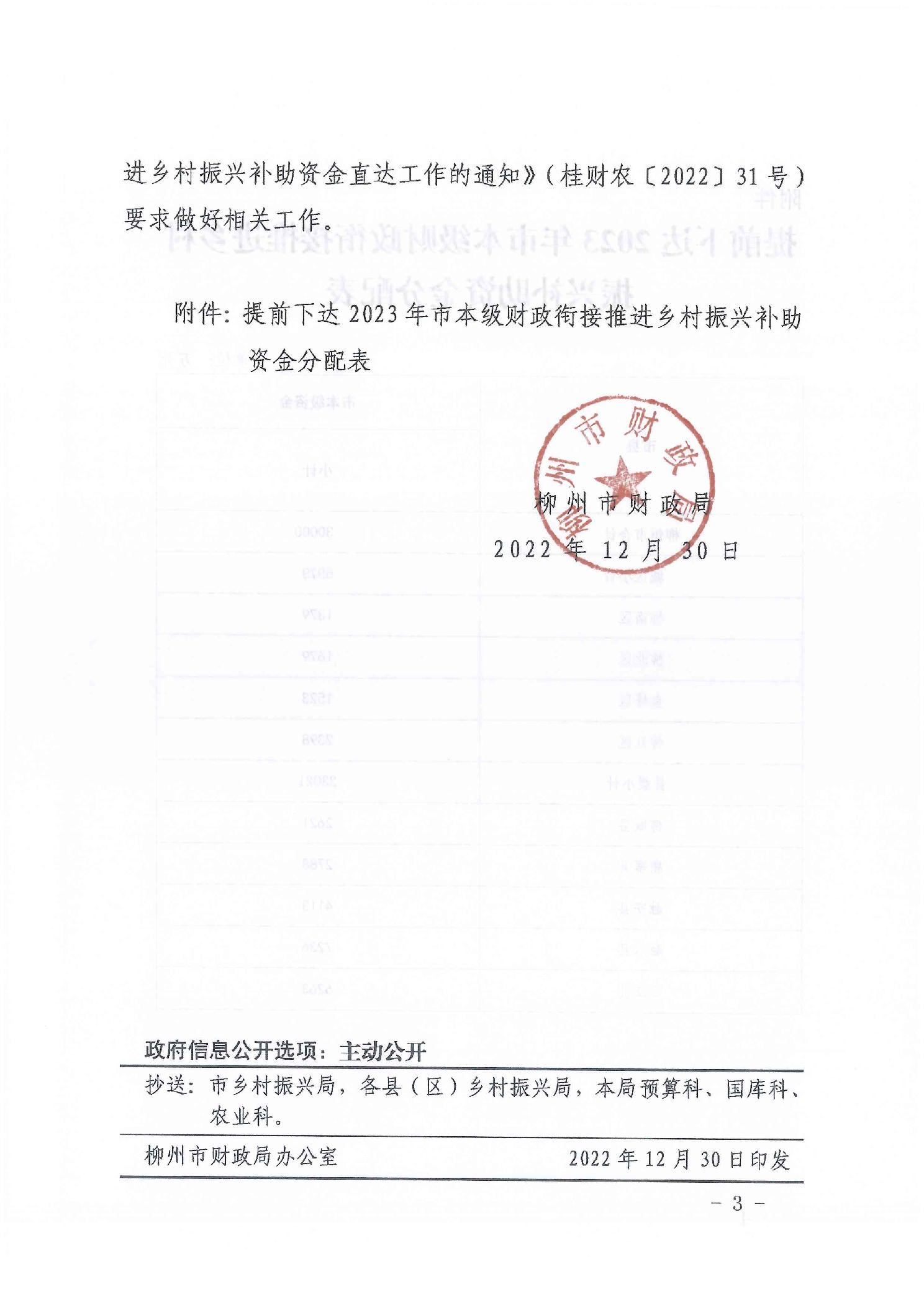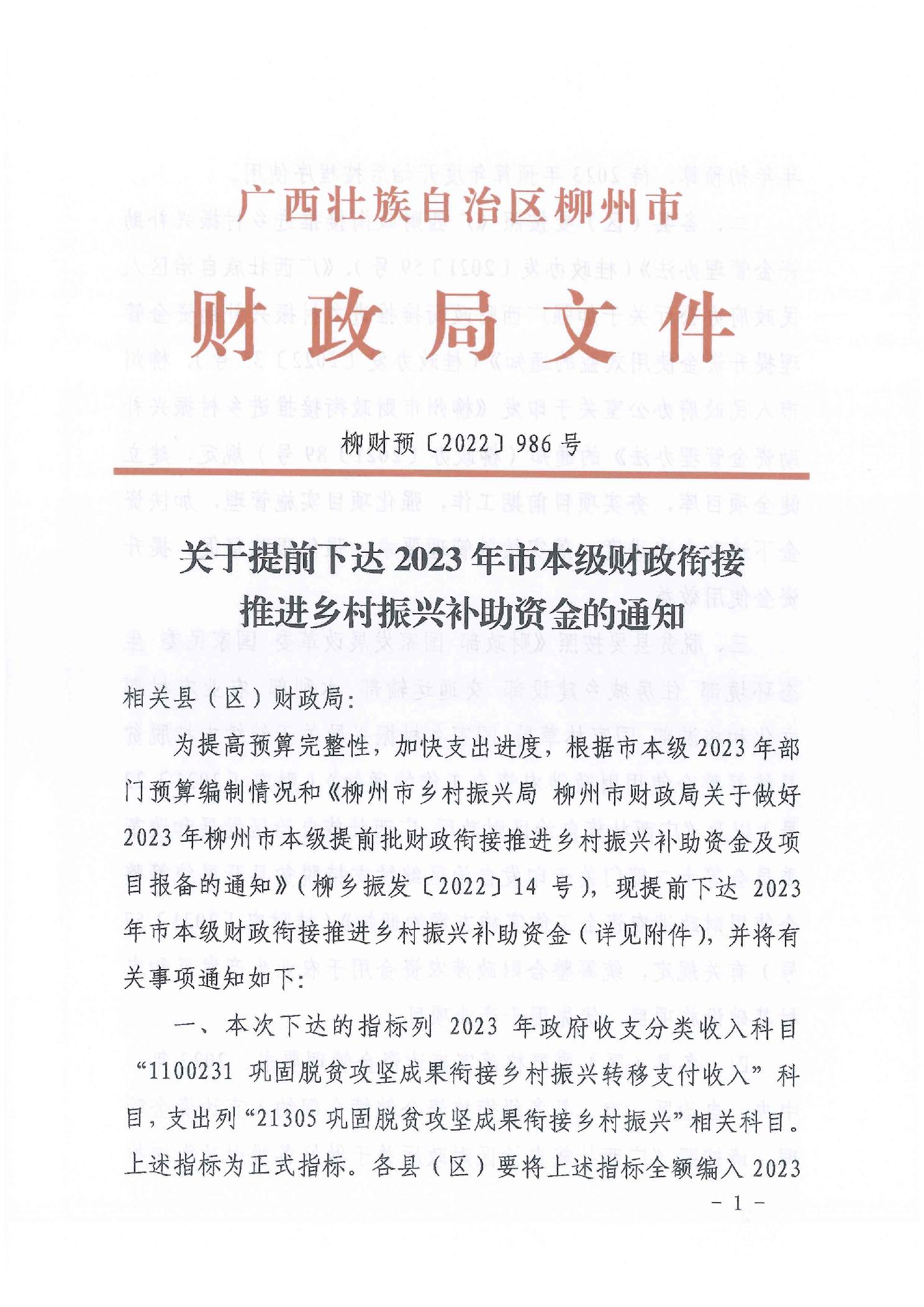 关于提前下达2023年市本级财政衔接推进乡村振兴补助资金的通知