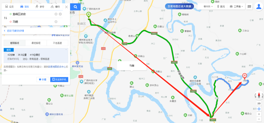 2.市区_柳梧高速_鹿寨江口_渡船至白沙_马朝(载车渡船2元钱, 但不太正常,此线路不太方便)