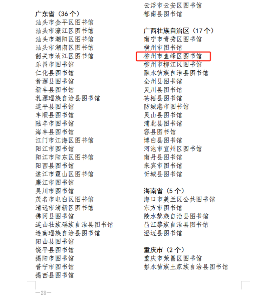 近日,文化和旅游部公示了第七次全国县级以上公共图书馆评估定级上等级名单,鱼峰区图书馆顺利通过评估,获评国家二级公共图书馆。