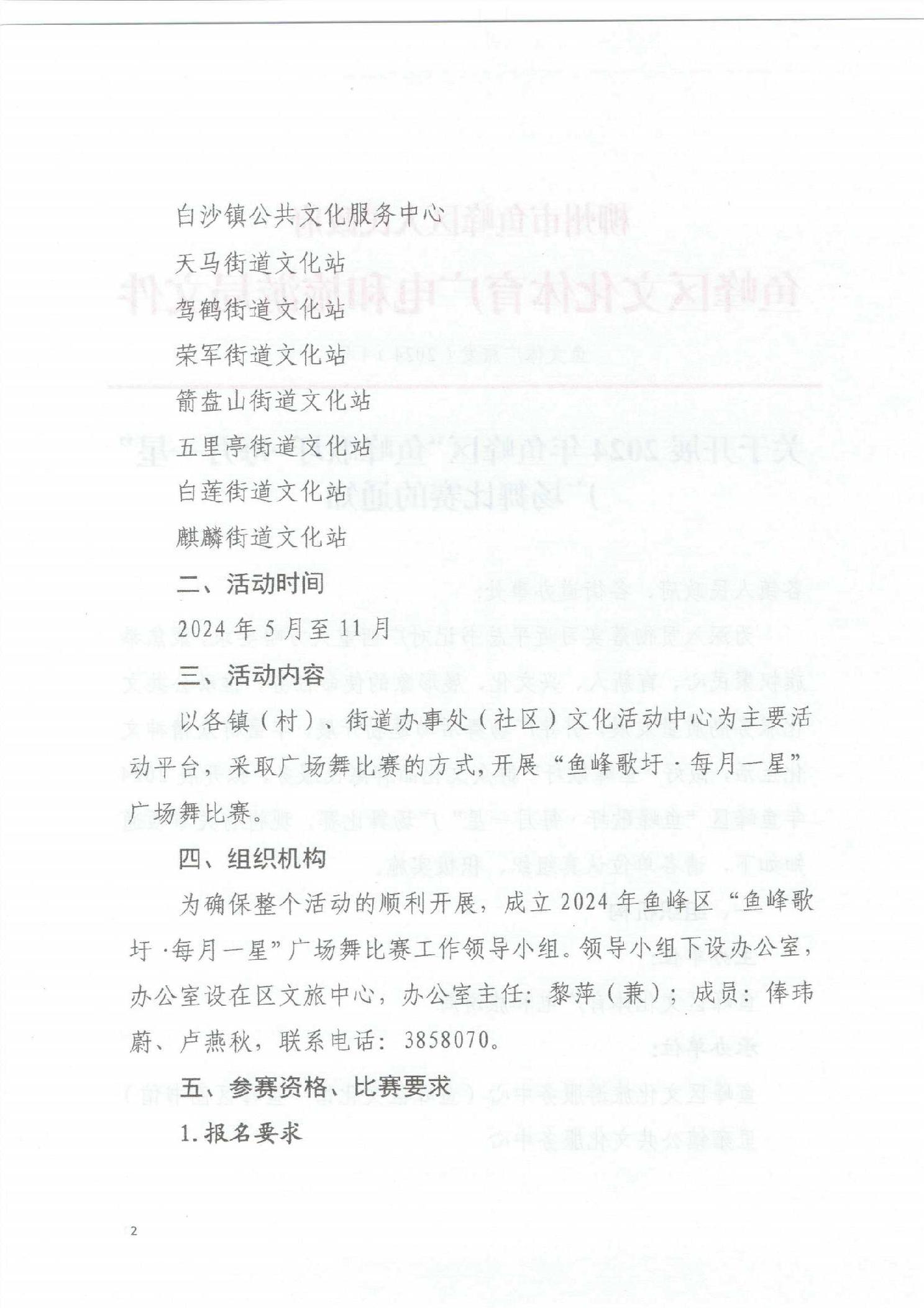 关于开展2024年鱼峰区“鱼峰歌圩·每月一星”广场舞比赛的通知