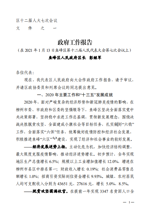 鱼峰区2021年政府工作报告