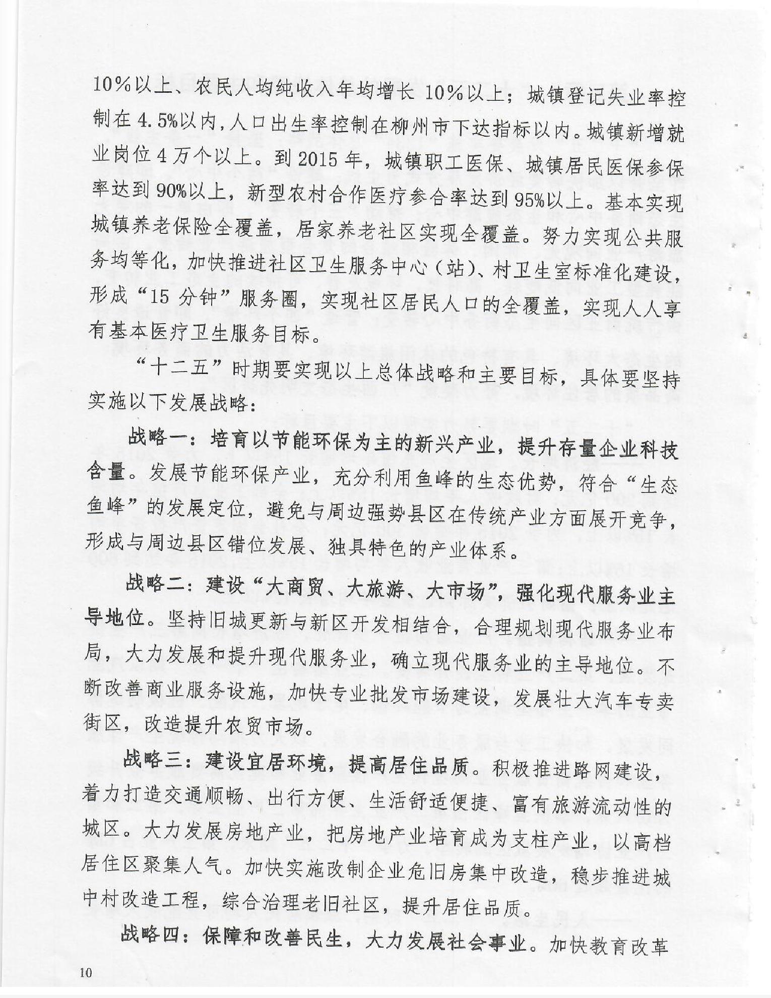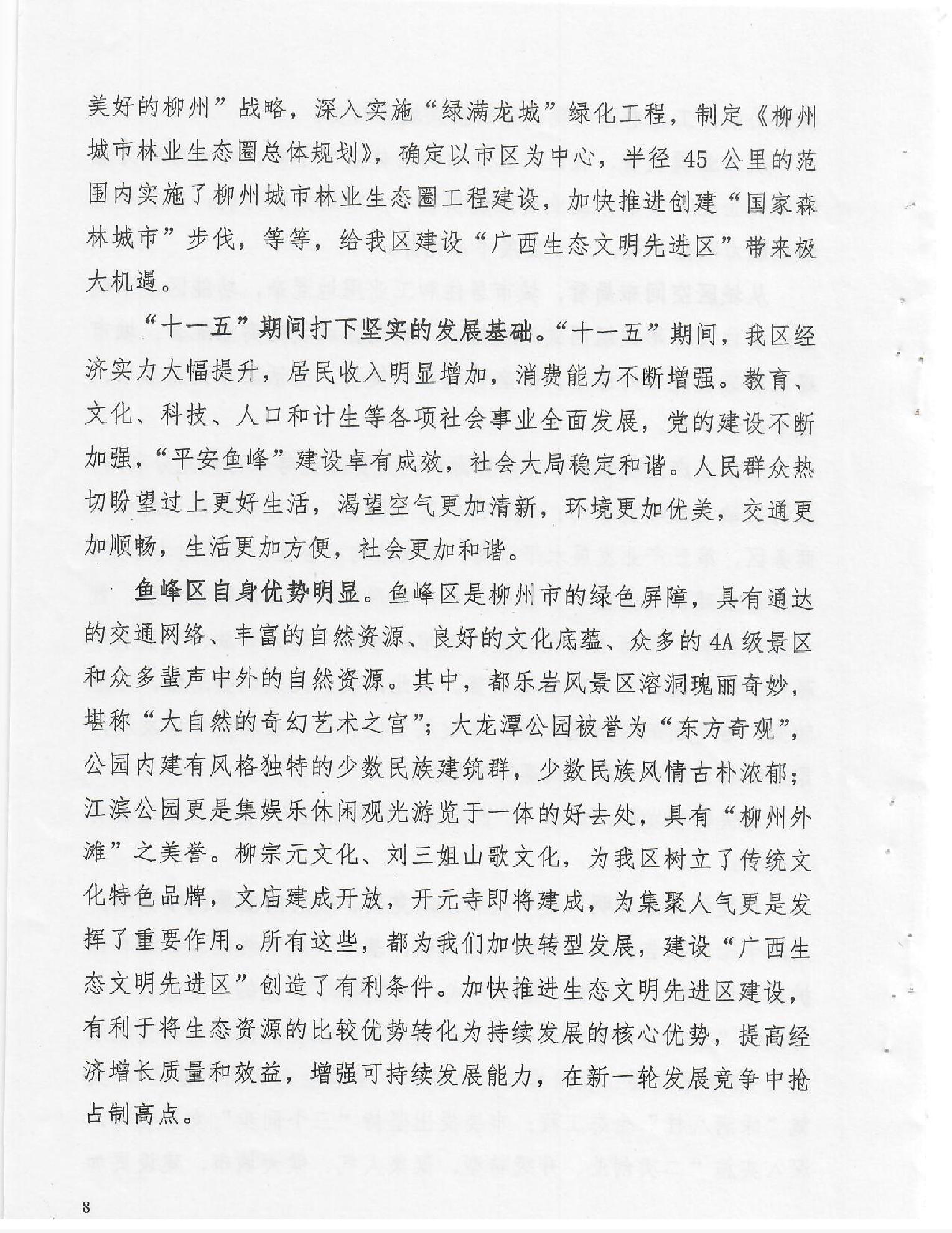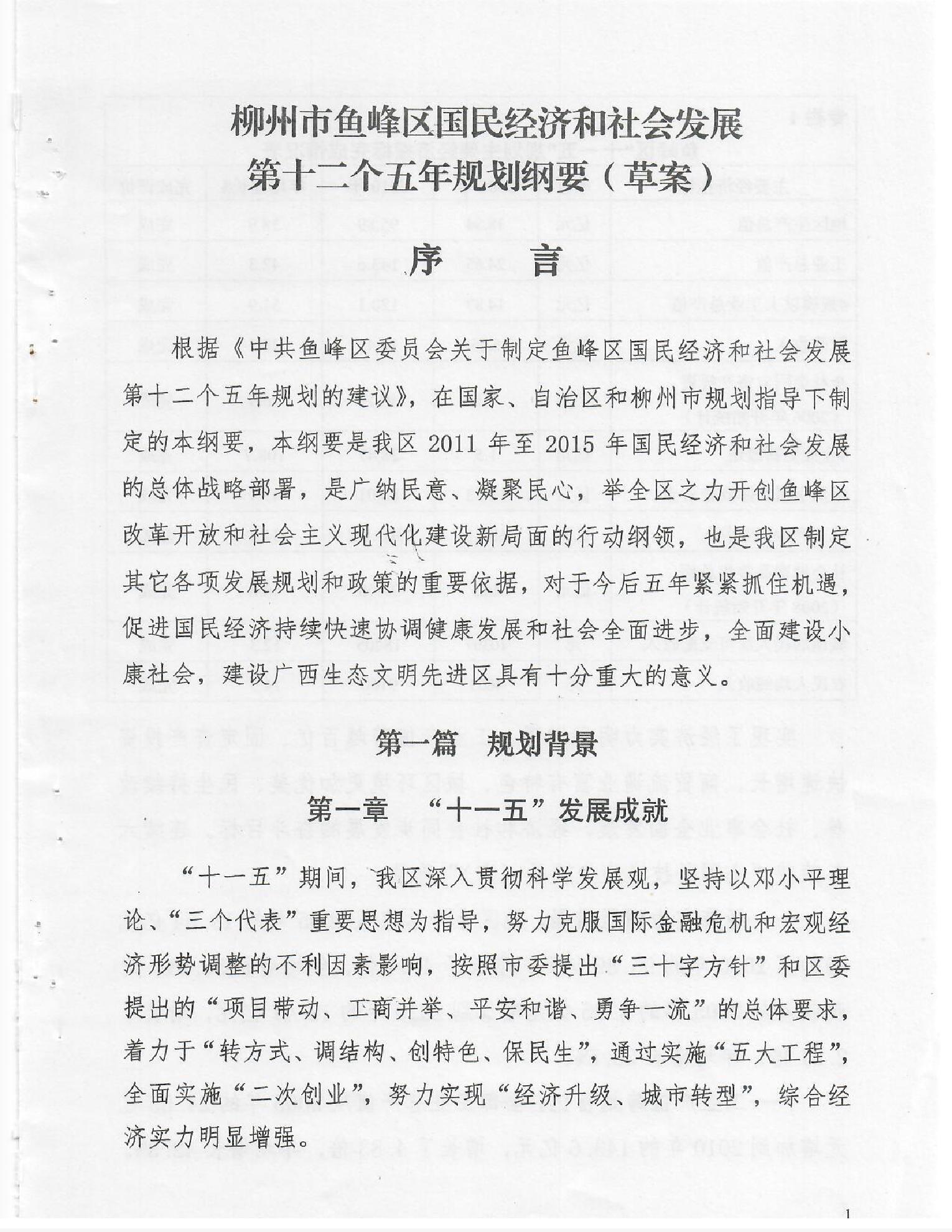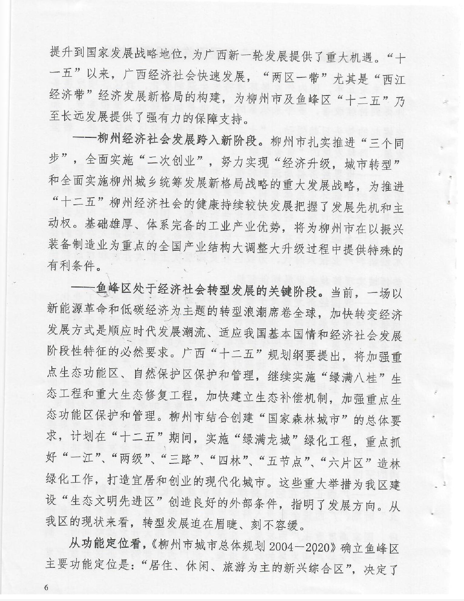 柳州市鱼峰区国民经济和社会发展第十二个五年规划纲要
